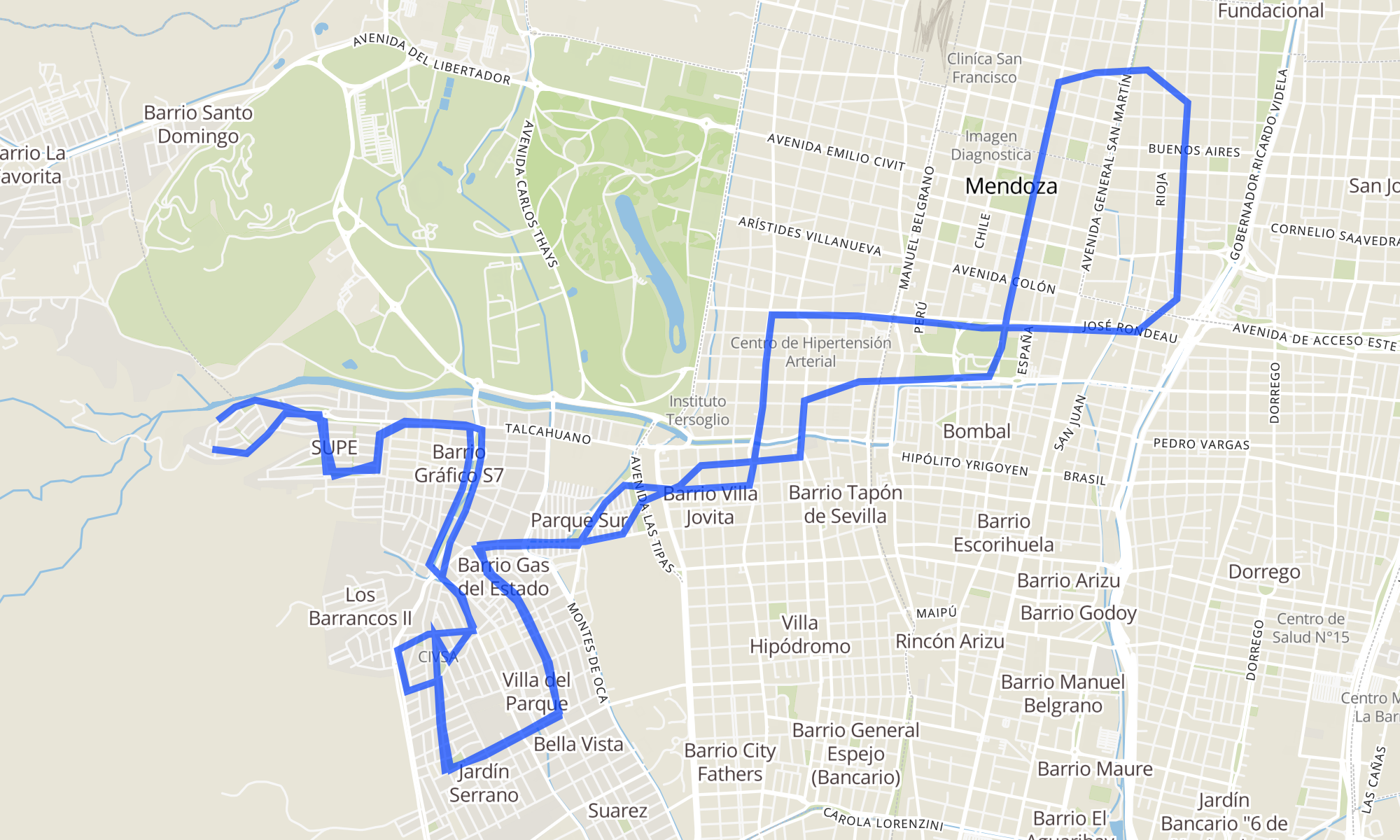 Sentido: Las Cuevas y Chaco (Godoy Cruz, Mendoza) ‎→ Villavicencio y Las Cuevas (Godoy Cruz, Mendoza) (111 paradas)