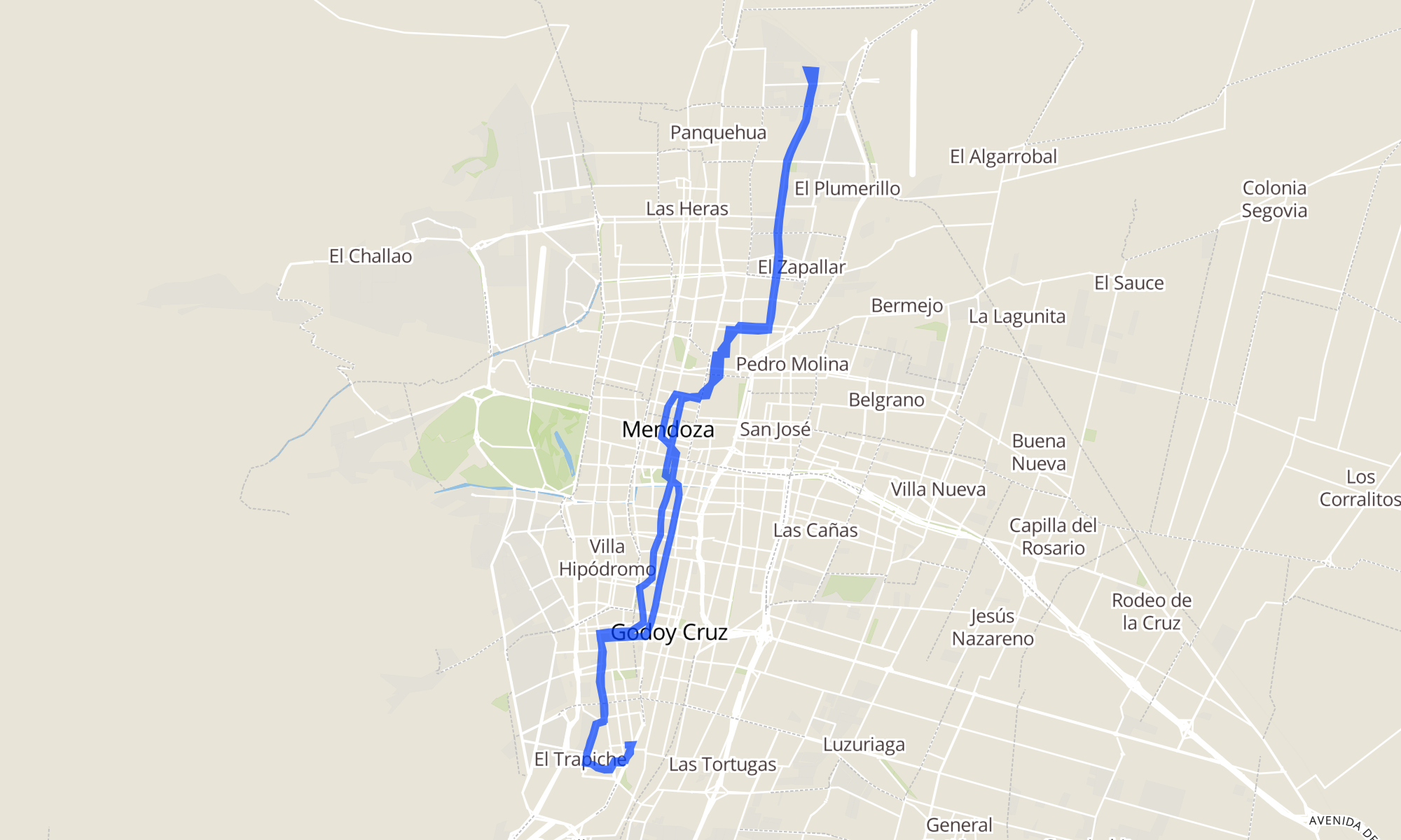 Sentido: Pedro Benegas y Genner ‎→ Larrea y Pedro Benegas (Godoy Cruz, Mendoza) (162 paradas)