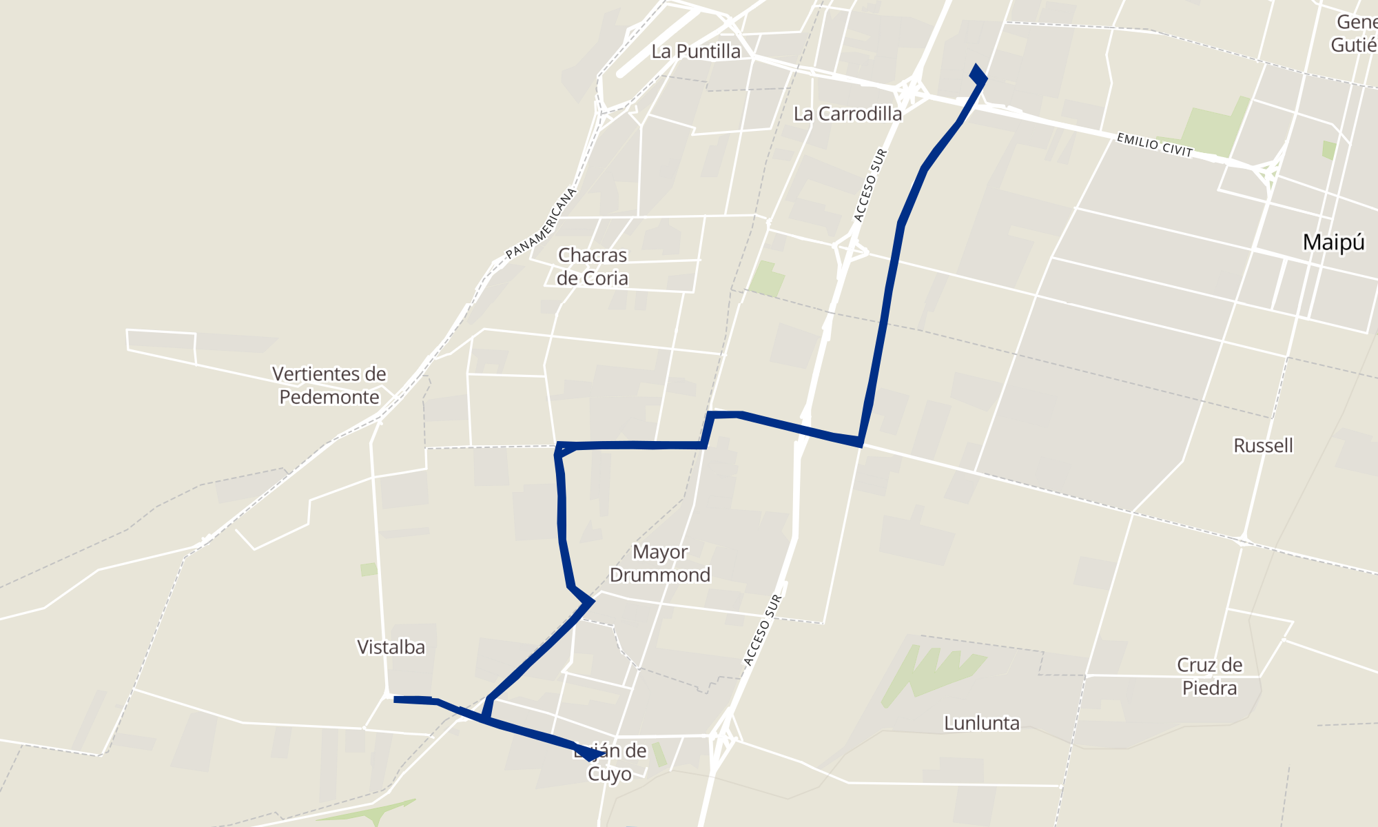 | Sáenz Peña y Embalse Potrerillos (Luján de Cuyo, Mendoza) | Sáenz Peña y Costa Canal (Luján de Cuyo, Mendoza) |