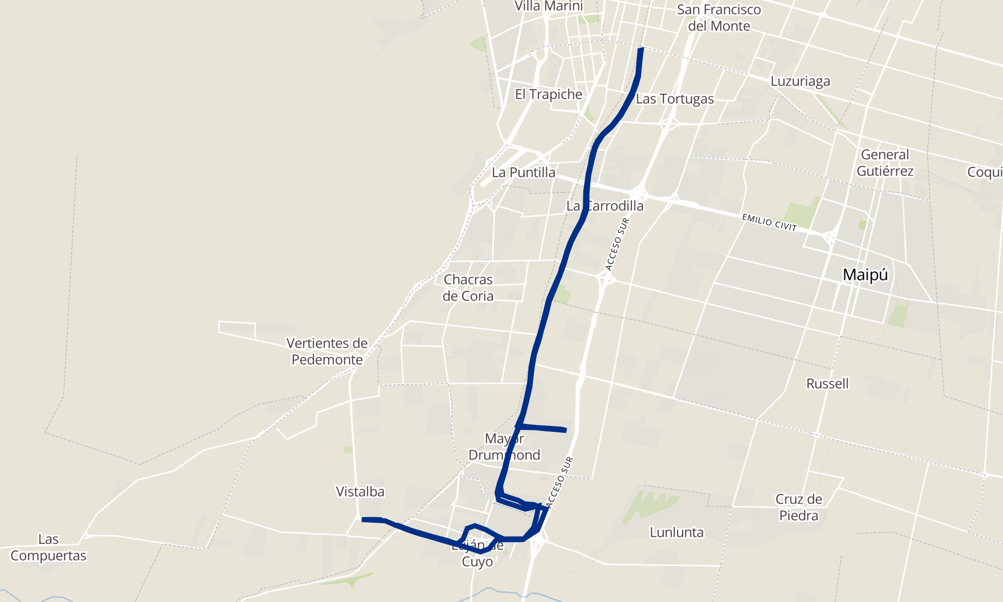 | Sáenz Peña y Embalse Potrerillos (Luján de Cuyo, Mendoza) | Sáenz Peña y Costa Canal (Luján de Cuyo, Mendoza) |
