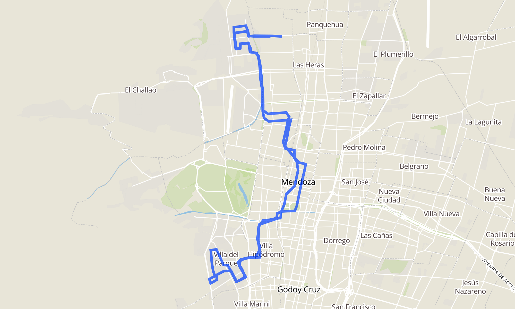 Sentido: 17 de Ocutbre y Esquiú (Las Heras, Mendoza) ‎→ Santa Rosa y Colón (Las Heras, Mendoza) (146 paradas)