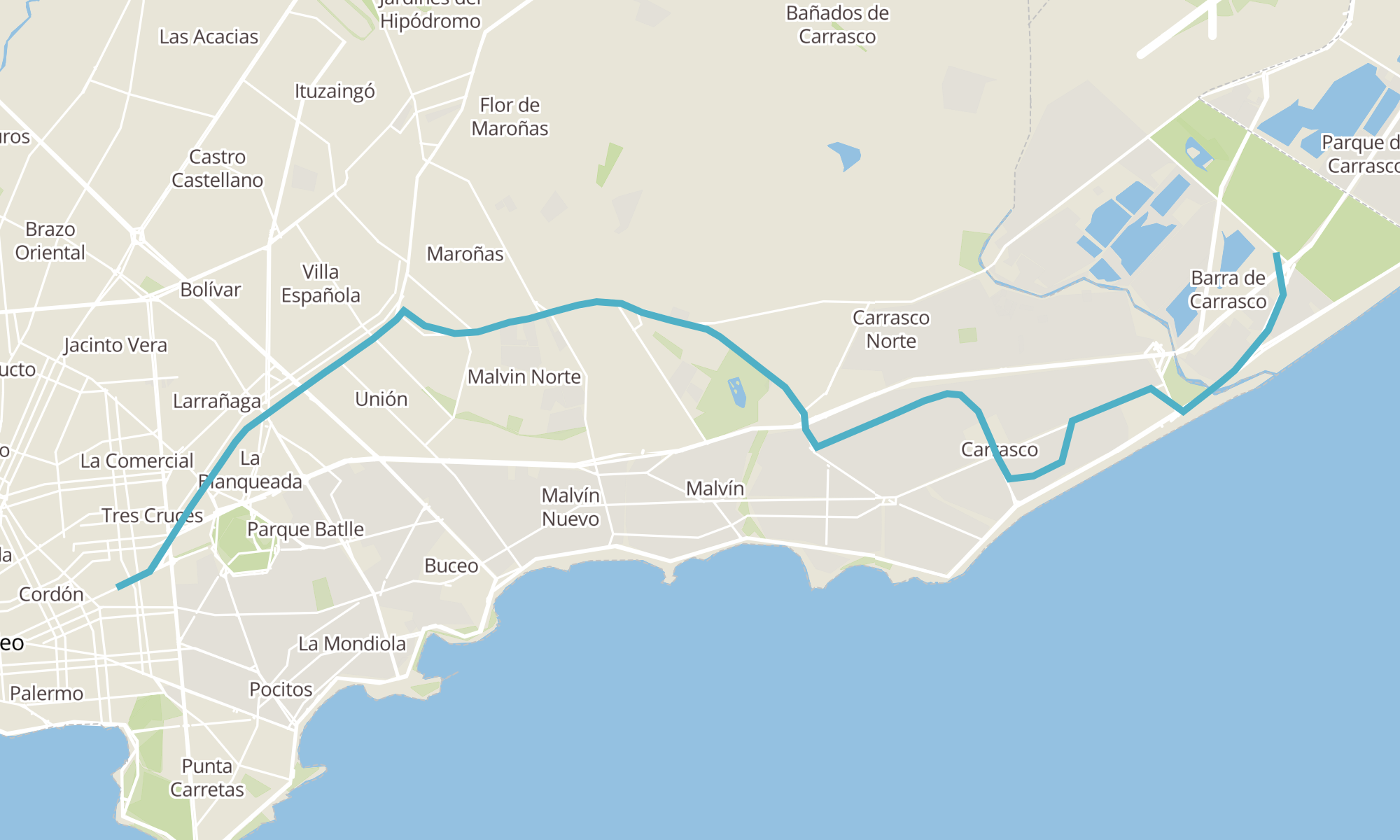 Sentido: AVDA A LA PLAYA - AVDA ING LUIS GIANNATTASIO ‎→ AV 18 DE JULIO - DR MARTIN C MARTINEZ (57 paradas)