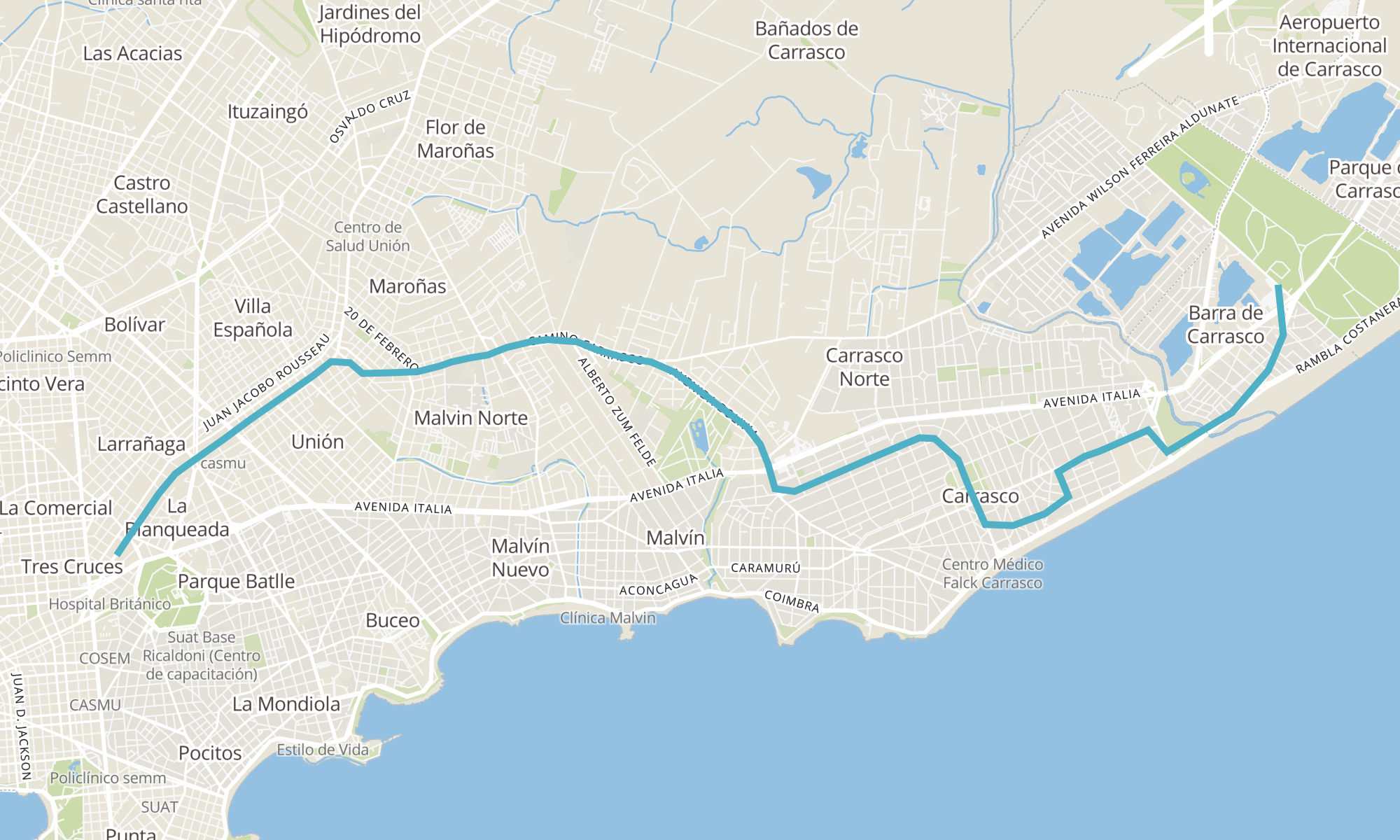 Sentido: AV 8 DE OCTUBRE - PTE BERRO ‎→ AVDA A LA PLAYA - AVDA ING LUIS GIANNATTASIO (59 paradas)
