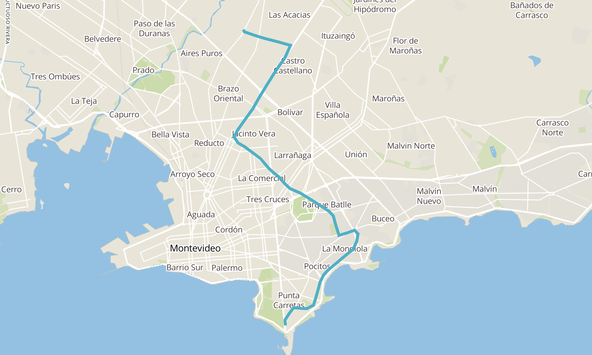 Sentido: BV GRAL ARTIGAS - TABARE ‎→ AV BURGUES - CNO CHIMBORAZO (54 paradas)