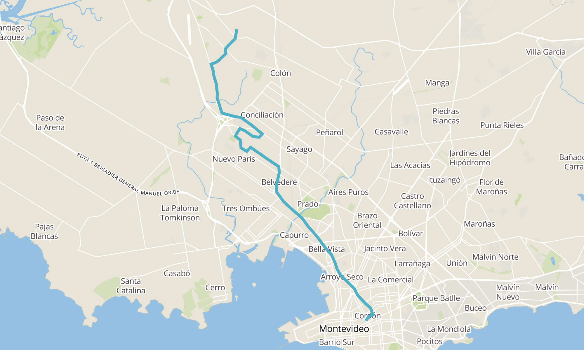 Sentido: MINAS - COLONIA ‎→ SANATORIO SAINT BOIS (65 paradas)