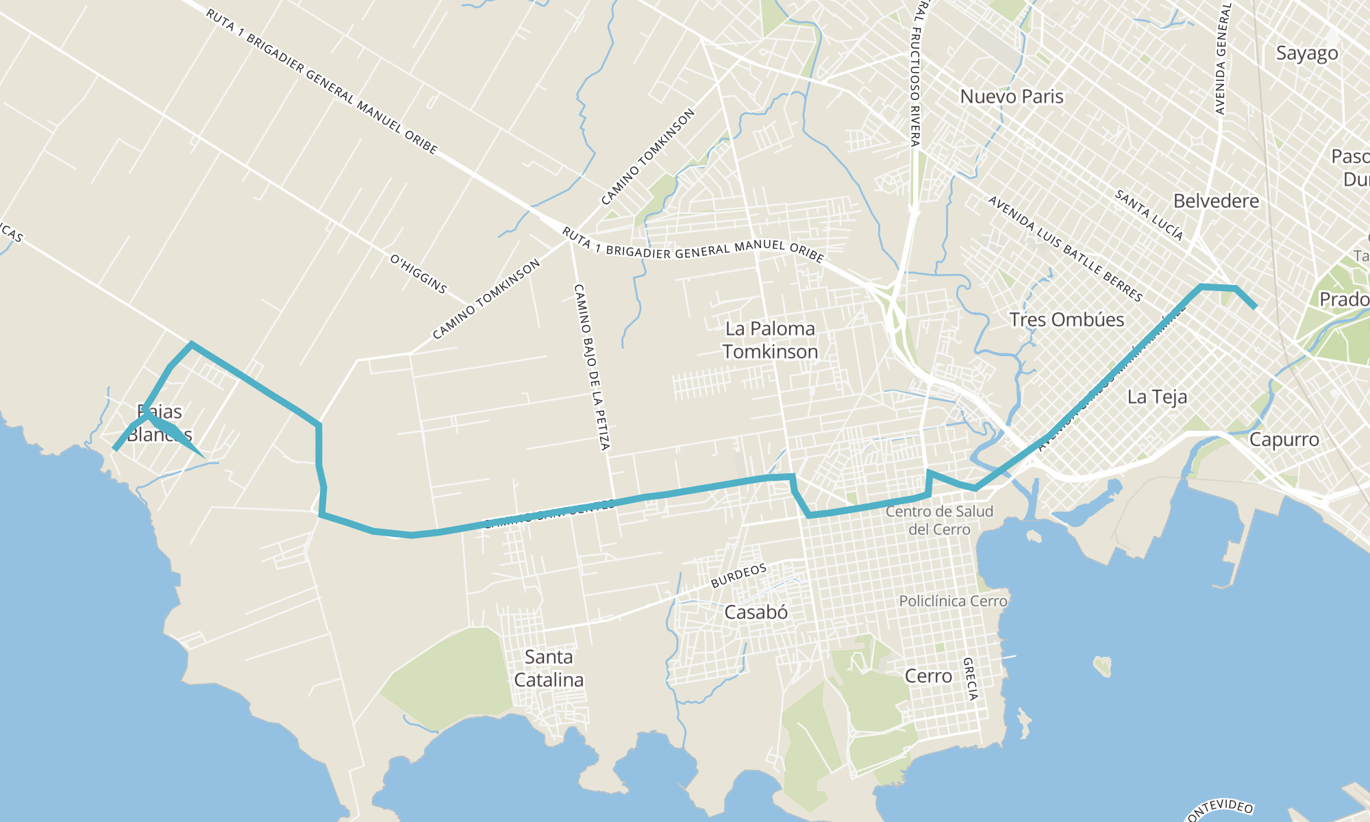 | AV AGRACIADA y JUAN ANTONIO ARTIGAS | AV CAP LEAL DE IBARRA - RBLA PUERTO SOLEDAD DE MALVINAS |