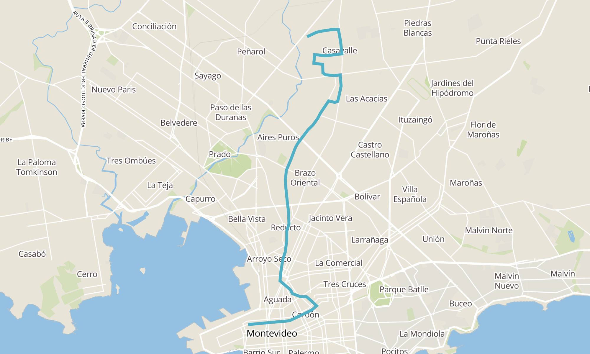 Sentido: QUERETARO y ANTILLAS ‎→ AV URUGUAY - FLORIDA (60 paradas)