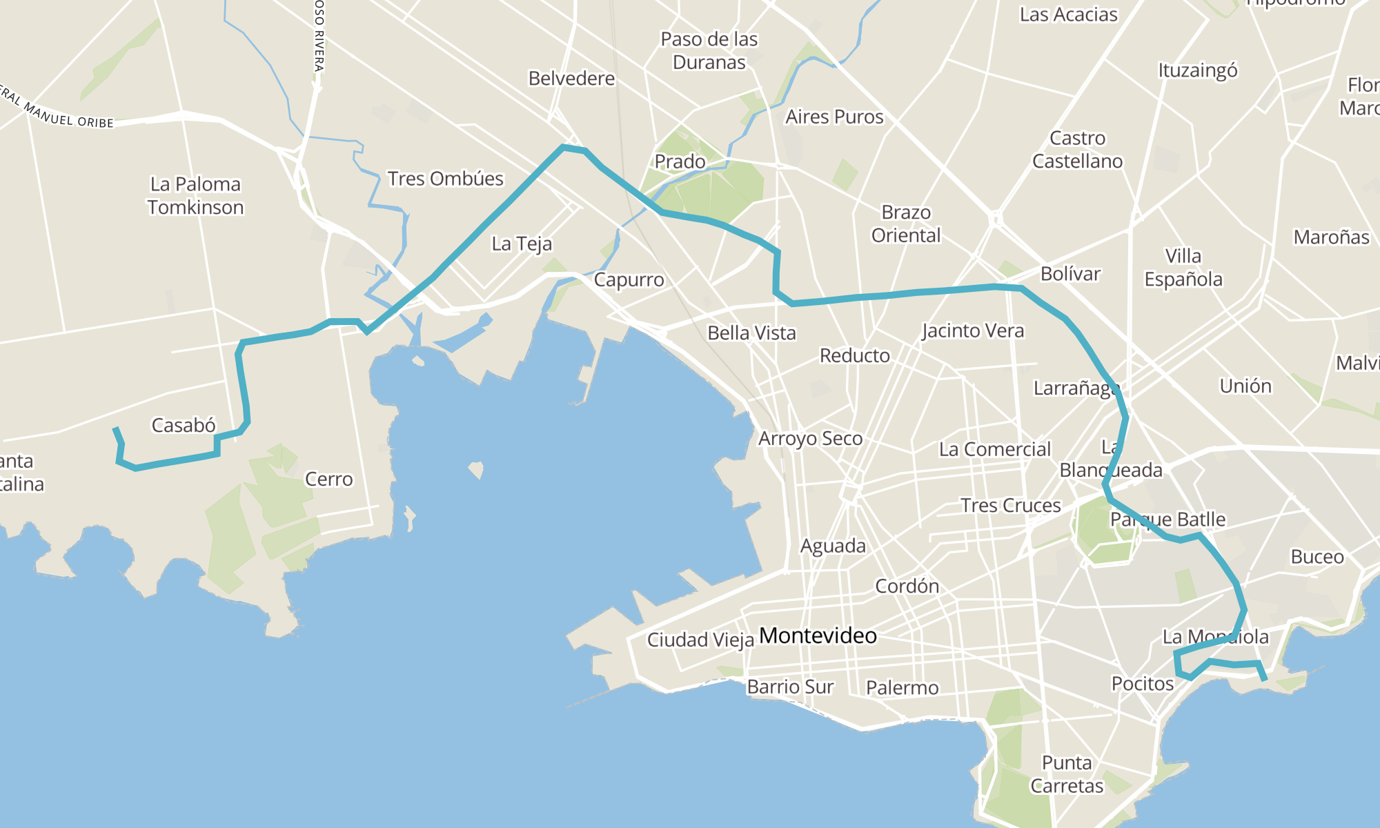 | TERMINAL BAJO VALENCIA (CASABO) | AV LUIS ALBERTO DE HERRERA - RBLA PTE CHARLES DE GAULLE |
