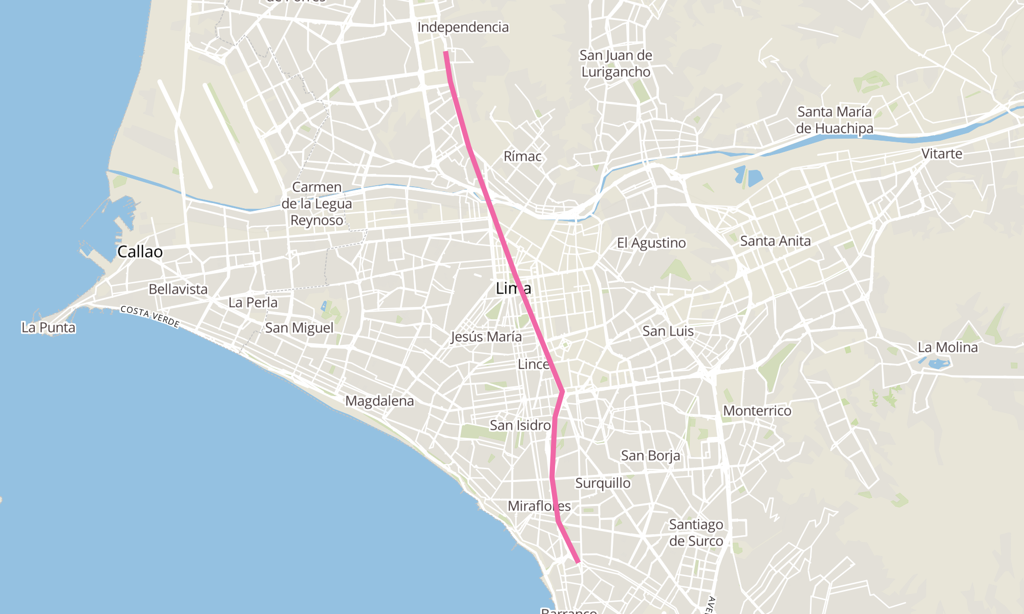 Recorrido de la línea : Estación Izaguirre (Independencia) - Estación Plaza De Flores (Barranco)