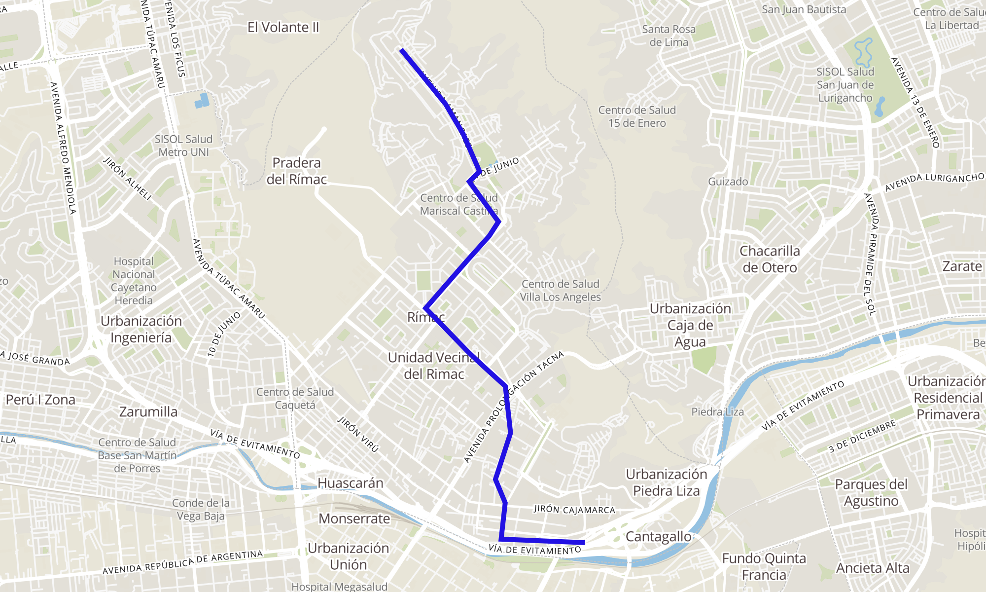 Recorrido de la línea 370: Rímac (Flor de Amancaes) - Rímac (Acho)