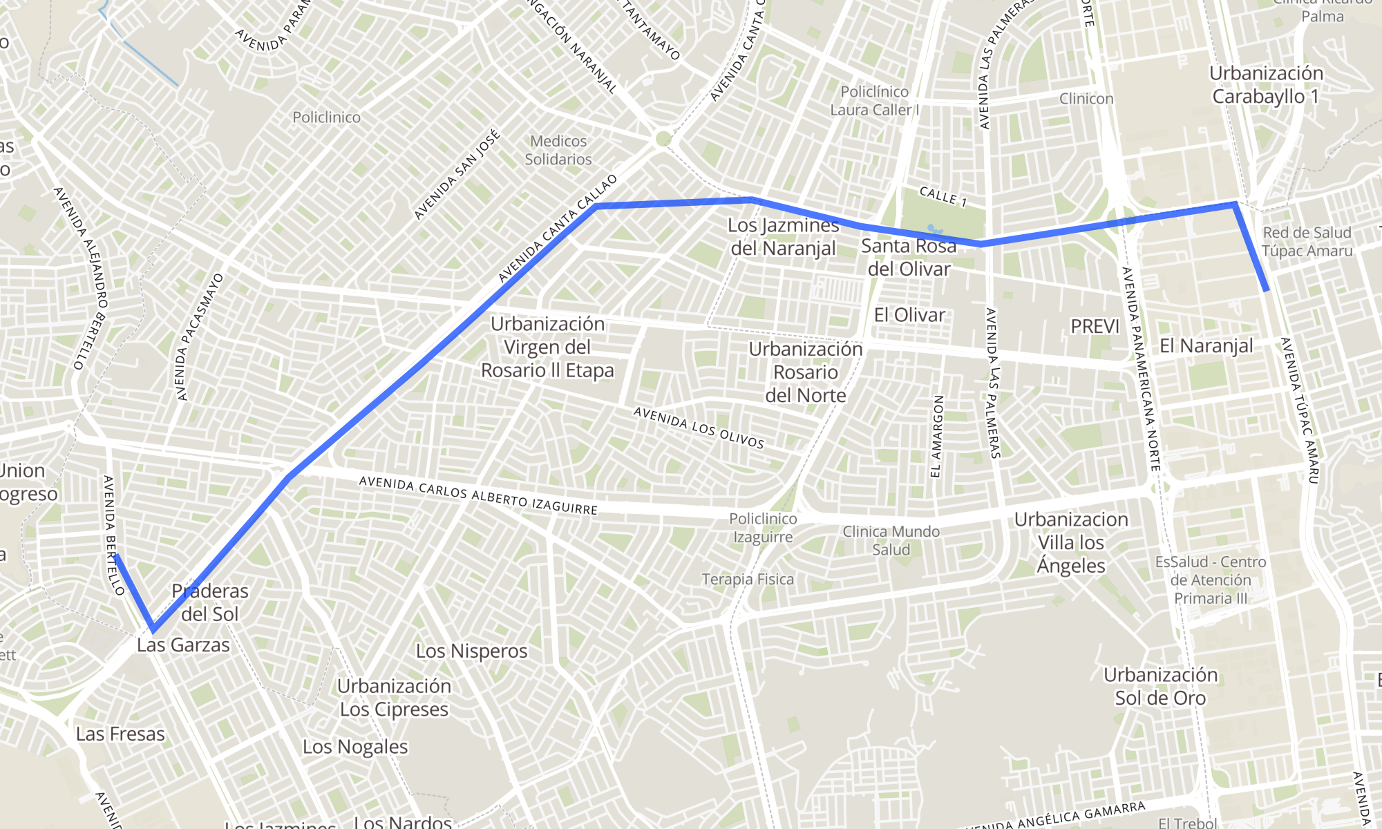 Recorrido de la línea AN-14: Bertello (San Martín de Porres) - Terminal Naranjal (Independencia)