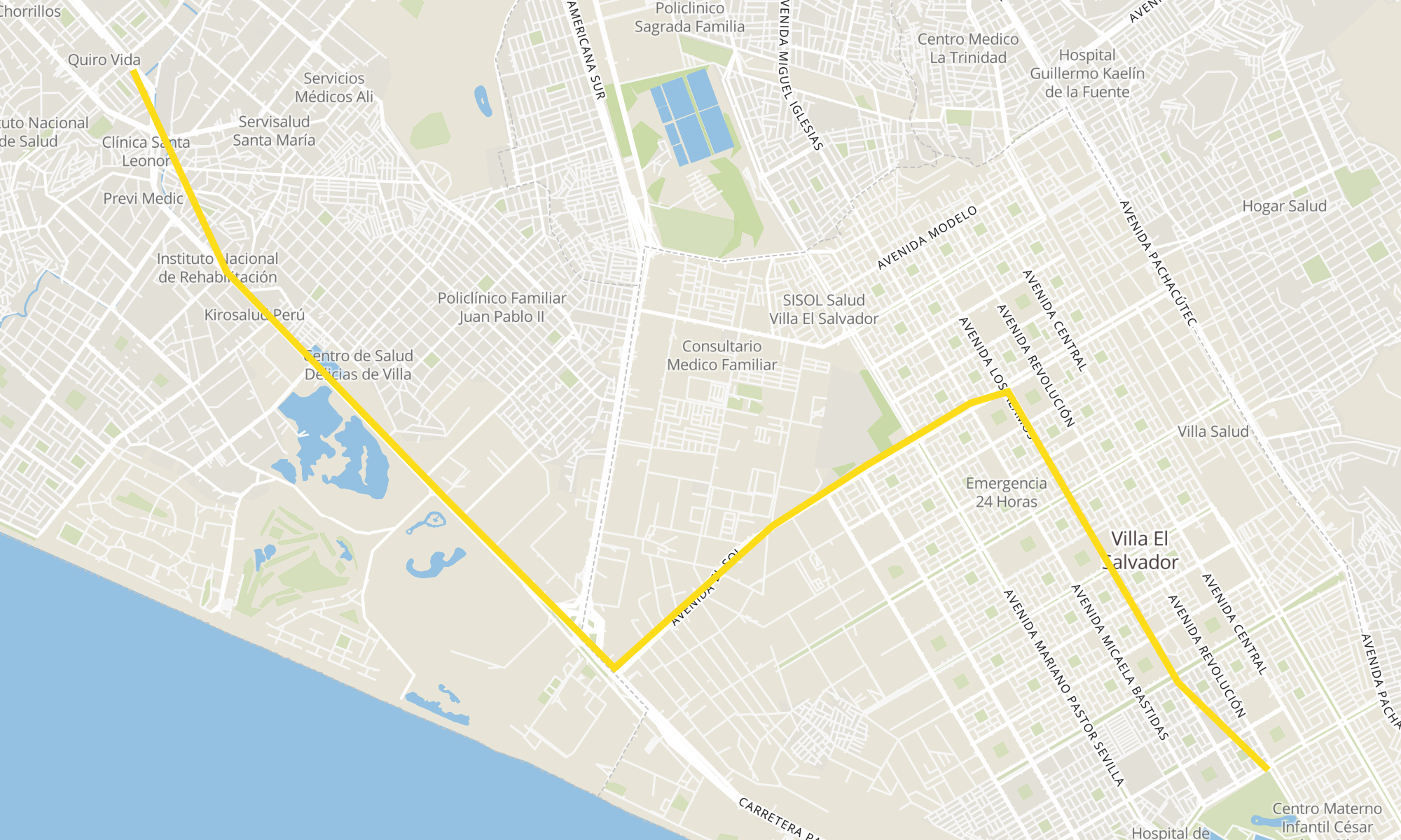 Recorrido de la línea AS-04: Parque Zonal Huáscar (Villa El Salvador) - Terminal Matellini (Chorrillos)
