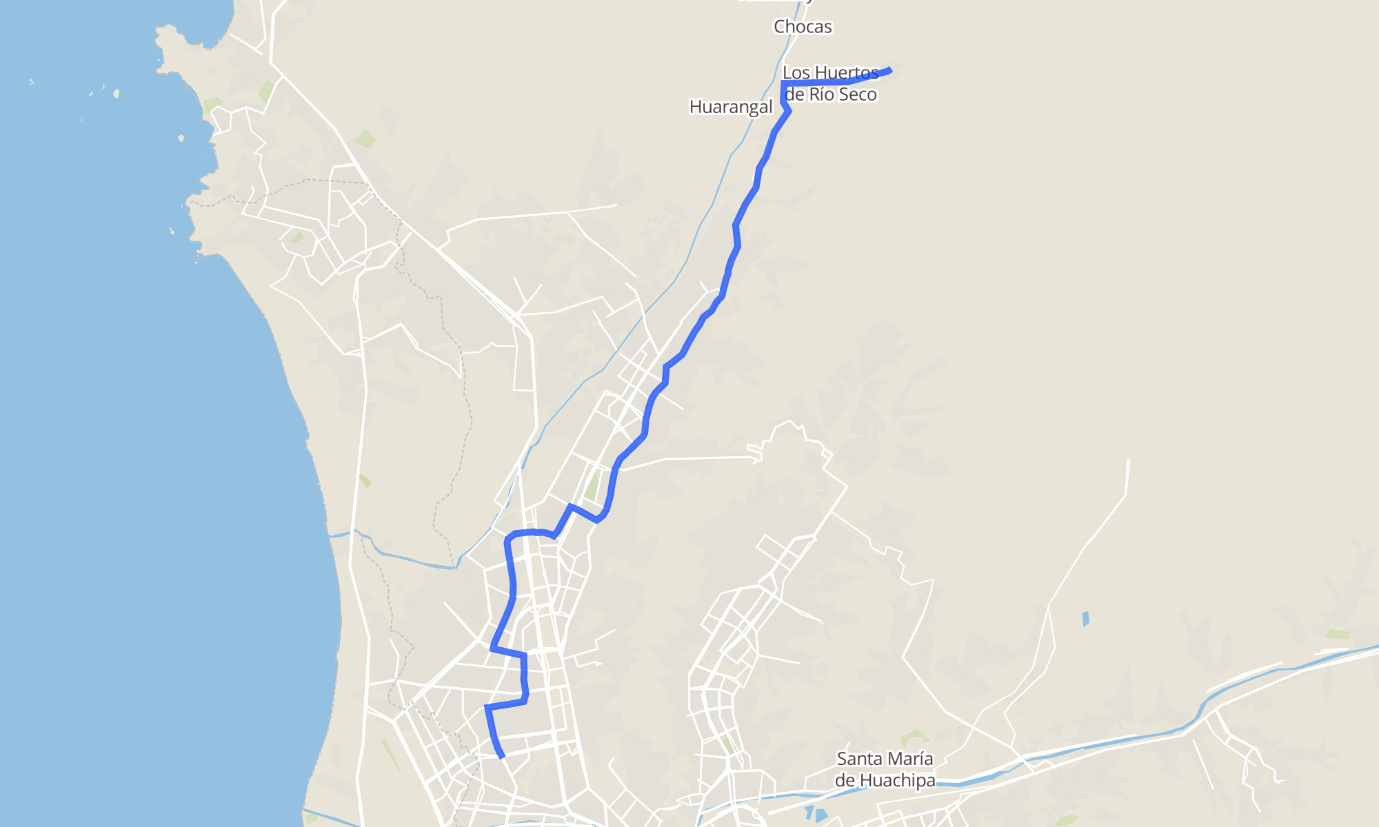 Recorrido de la línea 1023: San Martín de Porres (Óvalo Tomás Valle) - Carabayllo (Río Seco)