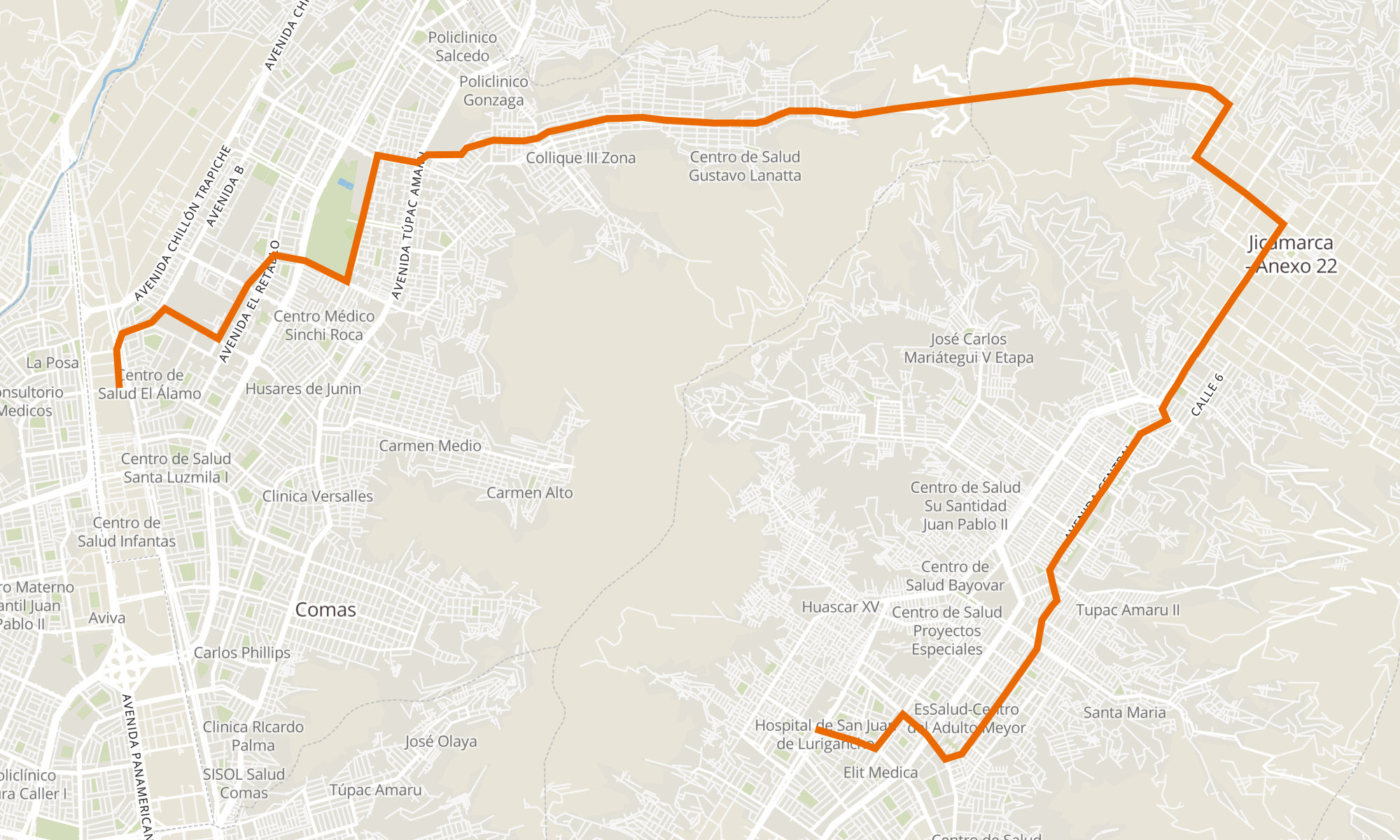 Recorrido de la línea TVE16: San Juan de Lurigancho (Canto Grande) - Comas (1ra de Pro)