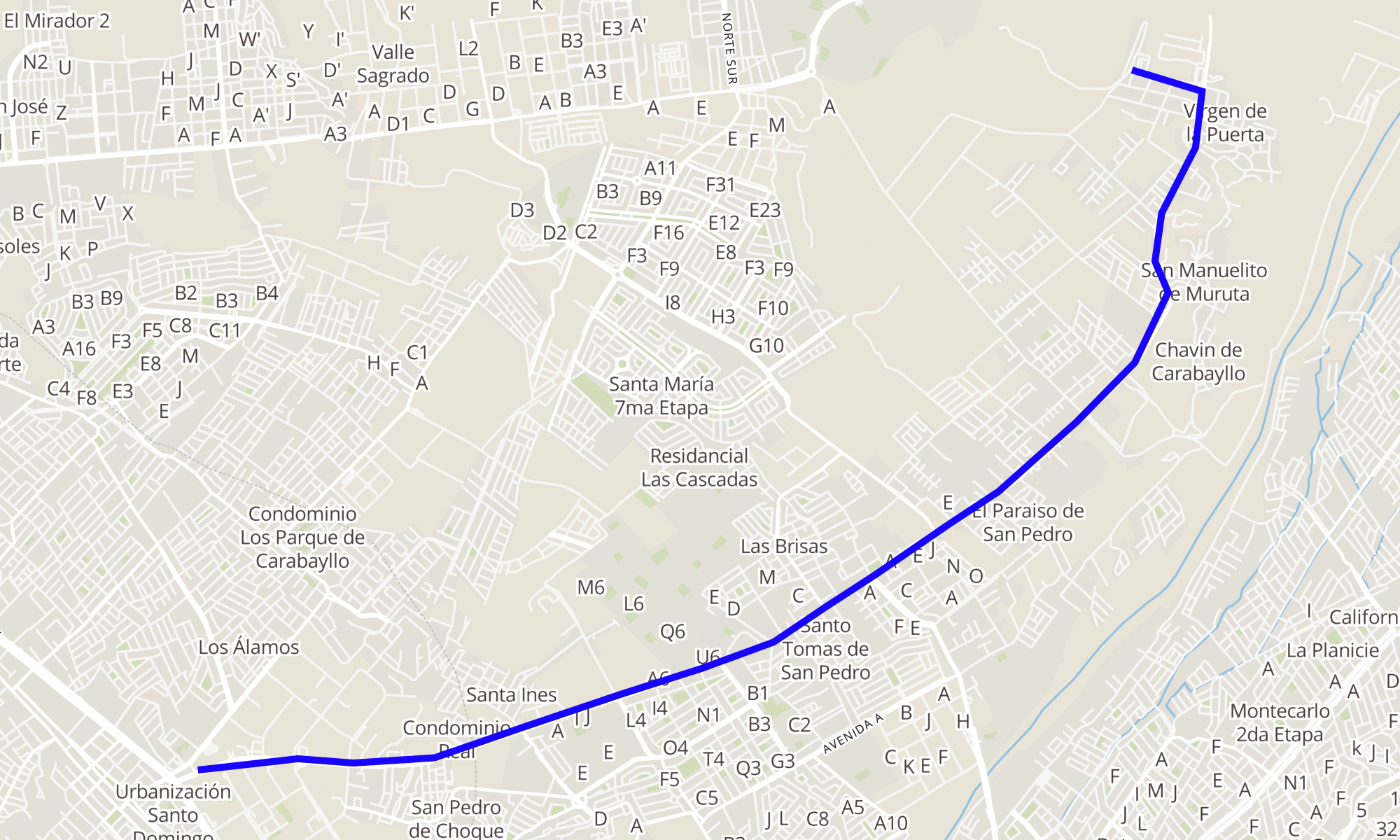 Recorrido de la línea 1325: Carabayllo (San Diego) - Puente Piedra (Plaza Vea)
