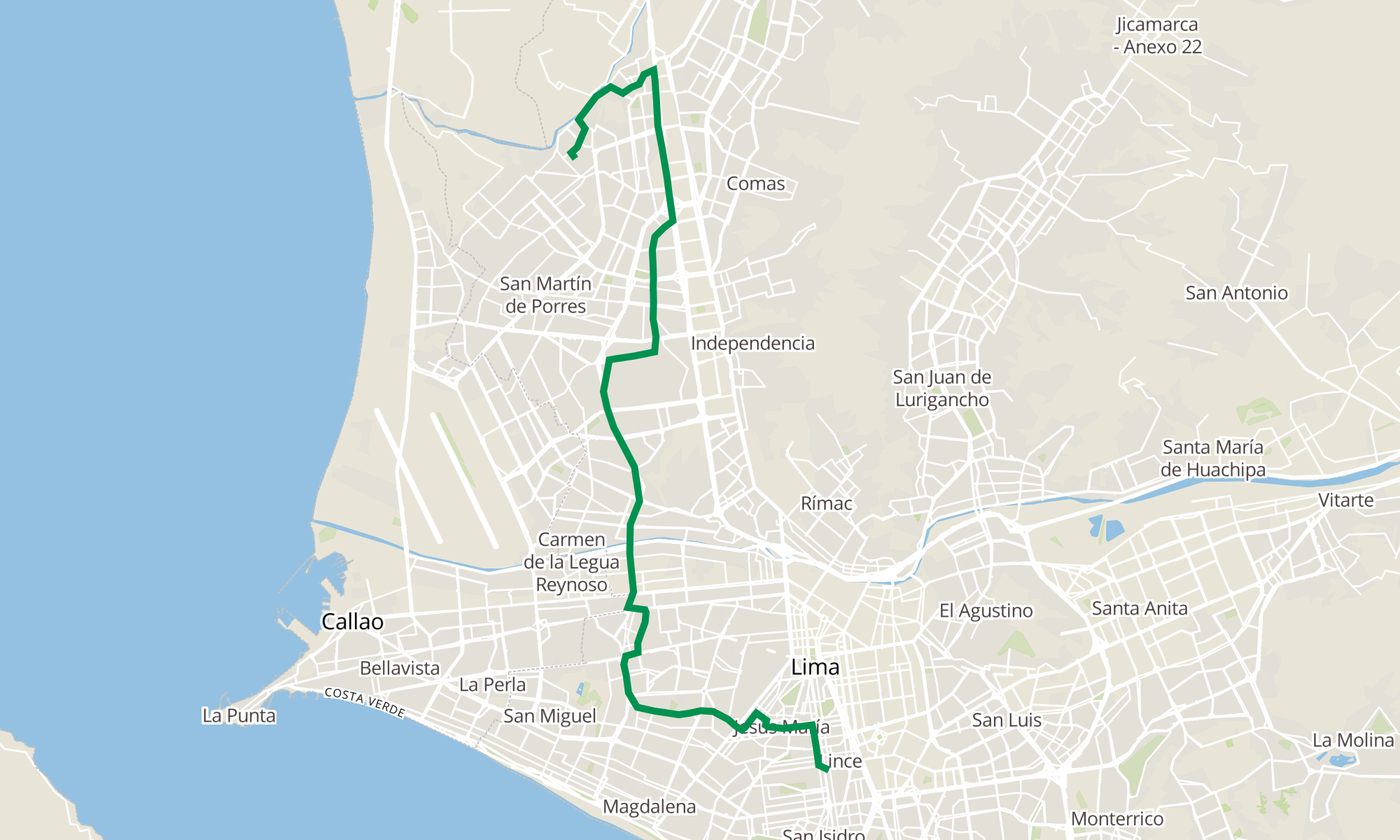 Recorrido de la línea 1038: San Martín de Porres (San Diego) - Lince (C.C. Risso)