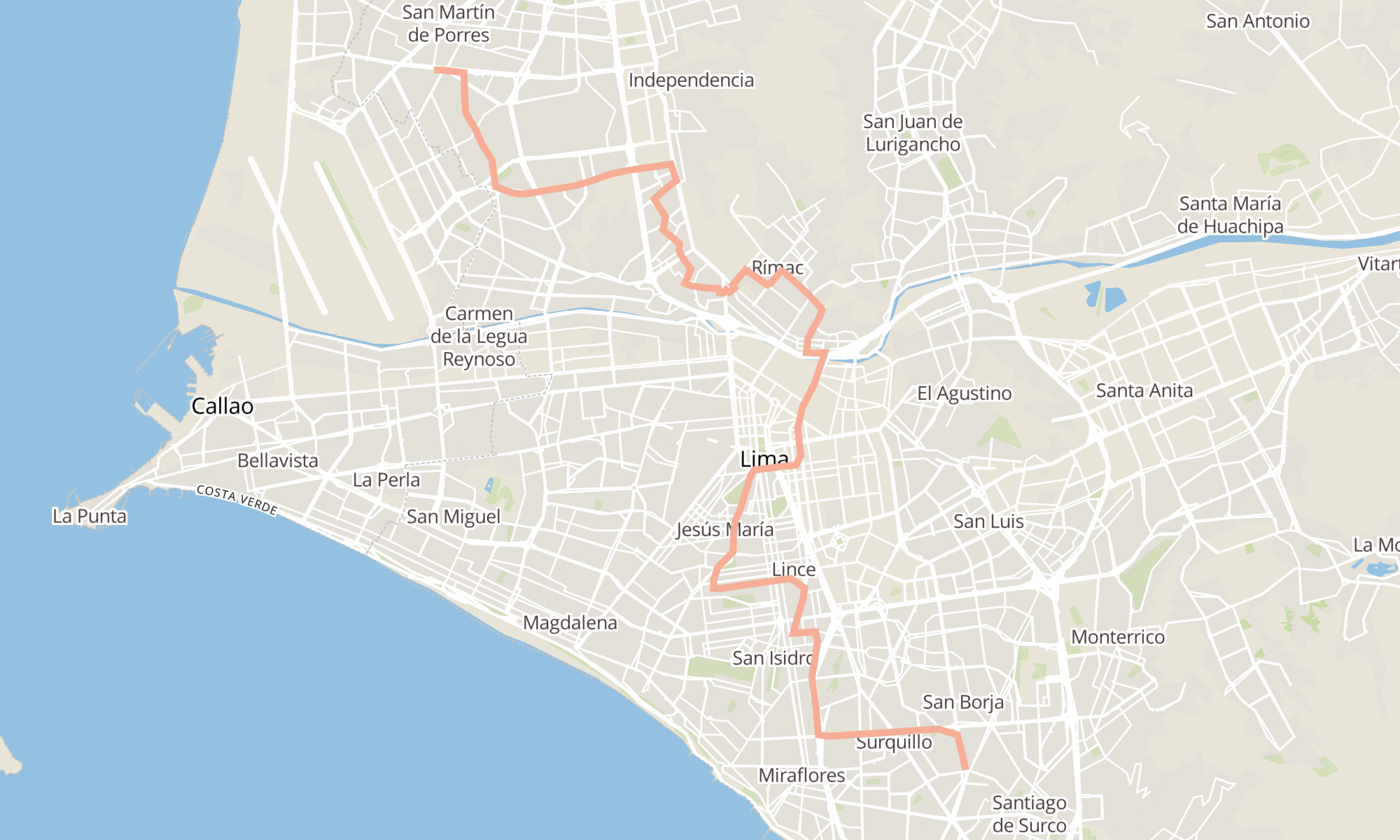 Recorrido de la línea 2703: Puente Camote (San Martin de Porres) - Villarán (Surquillo)