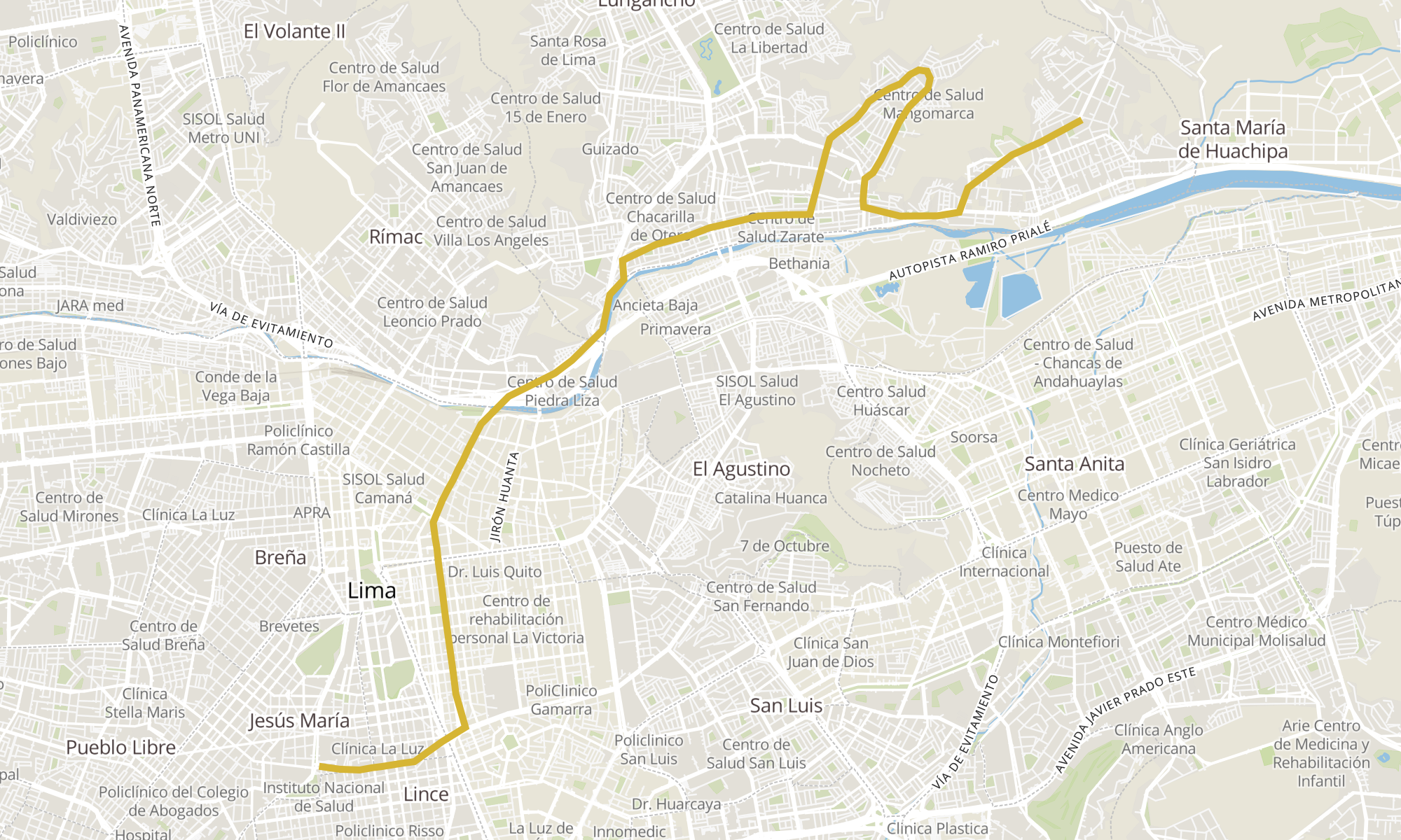 Recorrido de la línea 1474: Jesús María (Hospital Edgardo Rebagliati) - San Juan de Lurigancho (Campoy)