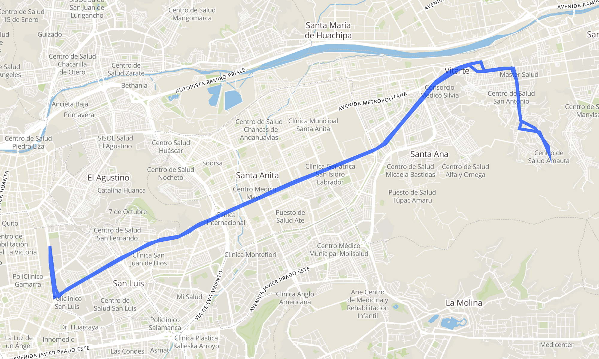 Recorrido de la línea 4607: Ate - La Victoria - Ate