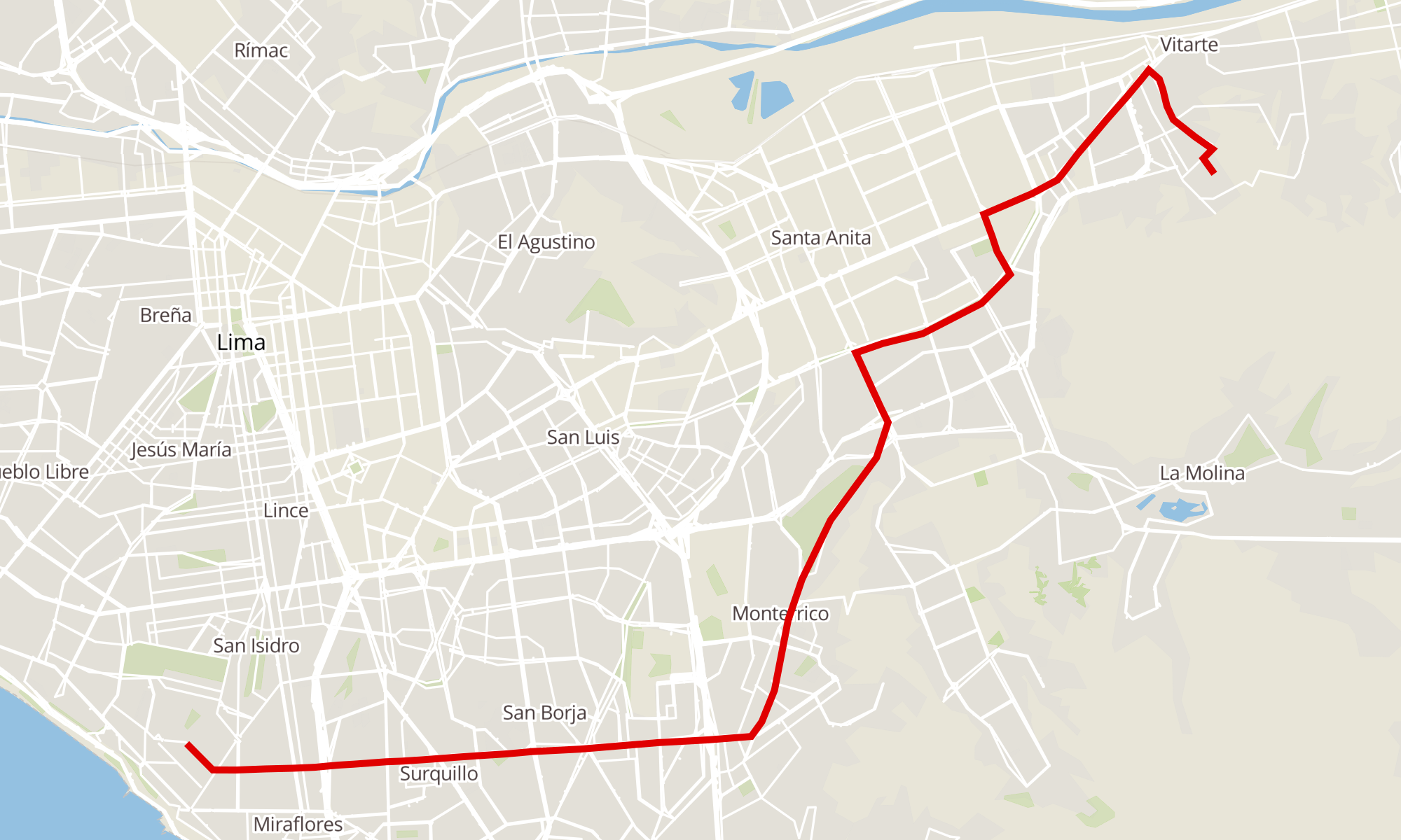 Recorrido de la línea 1073: San Isidro (Parque Mora) - Ate (Las Dalias)