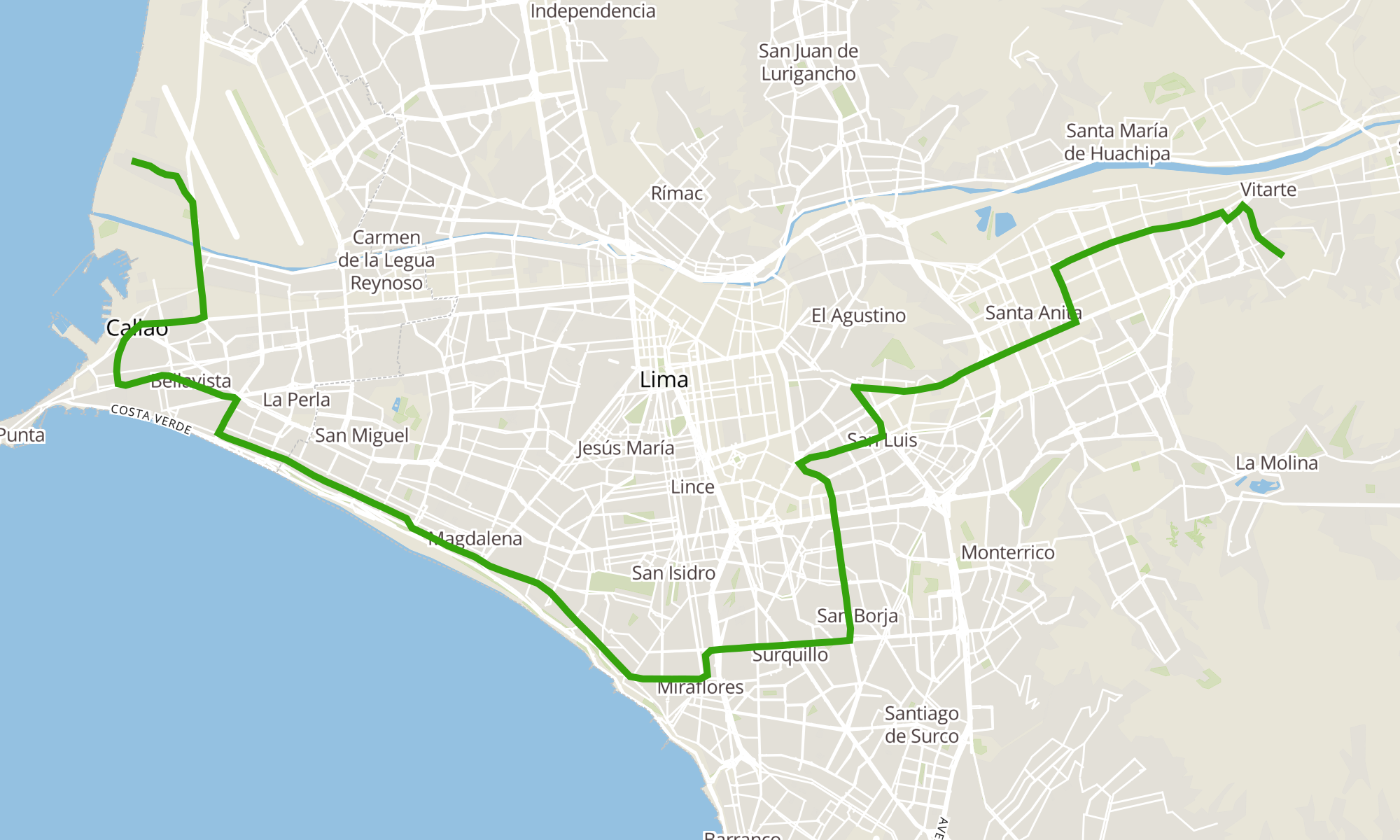 Recorrido de la línea 1227: Callao (Tiwinza) - Ate (Tagore)