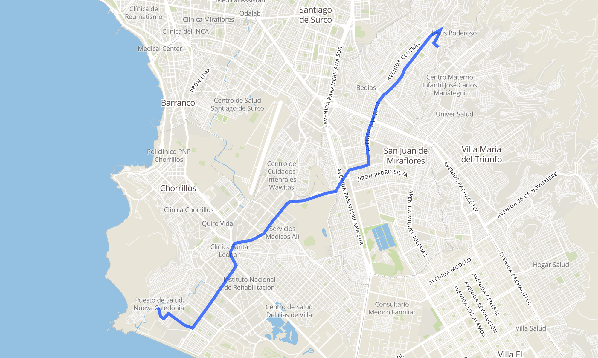 Recorrido de la línea 1379: San Juan de Miraflores (Pamplona Alta) - Chorrillos (San Genaro)