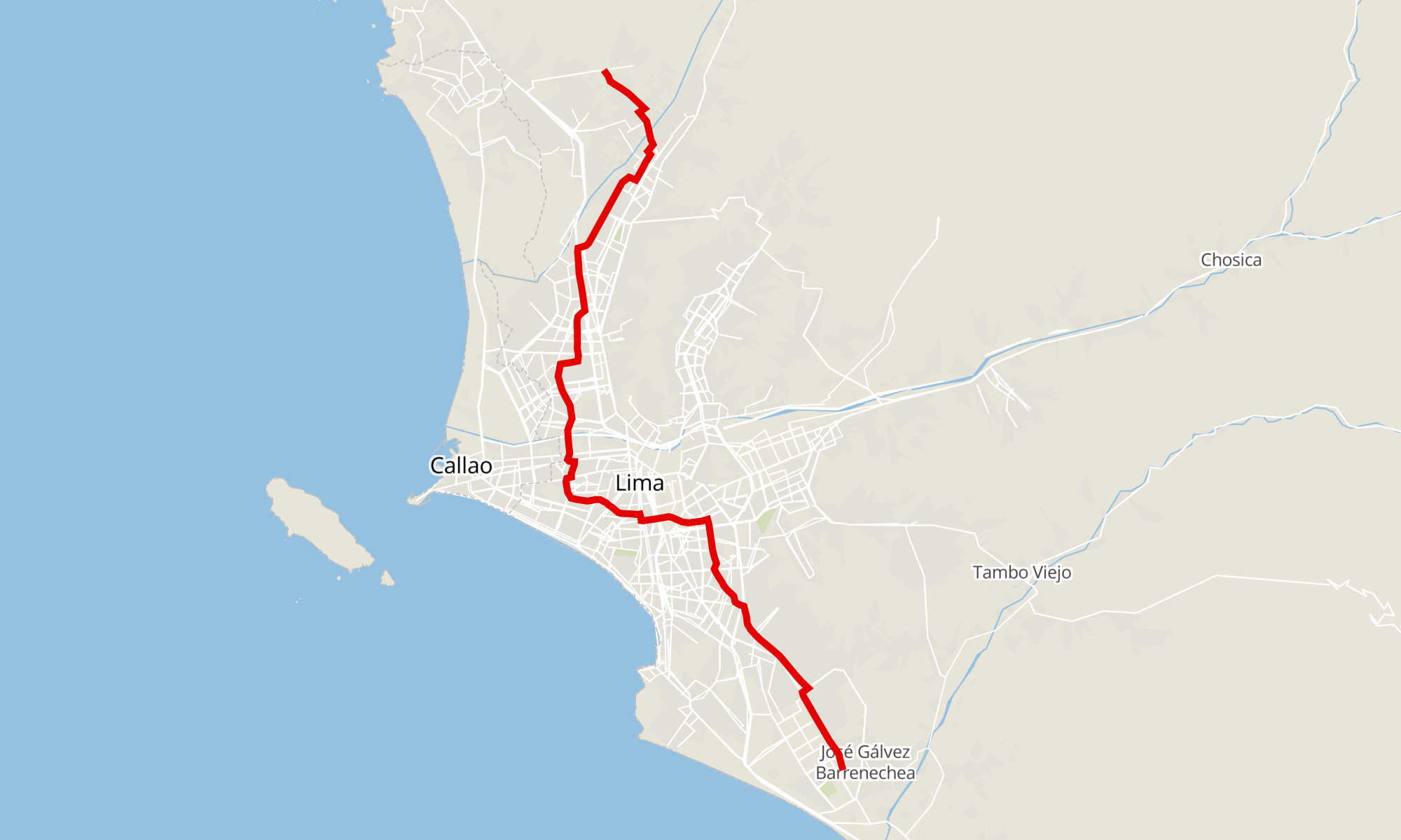 Recorrido de la línea 1236: Carabayllo (Huarango) - Villa El Salvador (Av. Pachacútec)