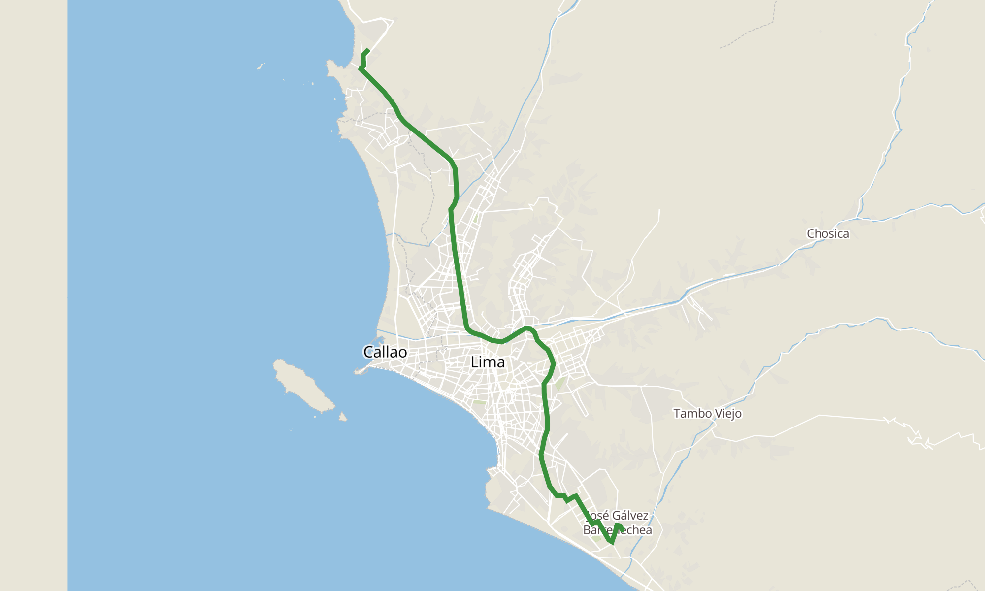Recorrido de la línea 1240: Pachacámac (Las Palmas) - Ancón (Zona Industrial)