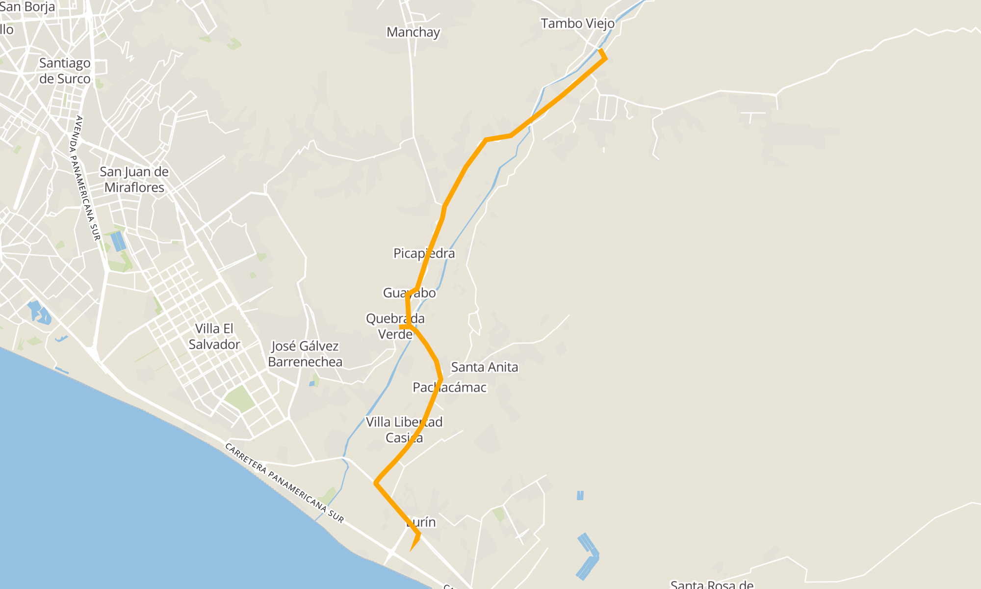 Recorrido de la línea 8401: Felipe de las Casas/Rio Lurin (Cieneguilla)
