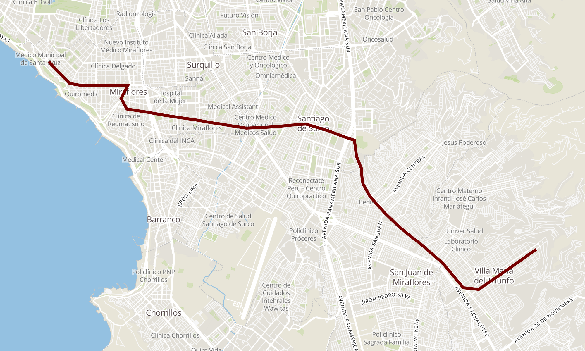Recorrido de la línea 8616: Av. Ejercito (Miraflores) - Av. El Triunfo (Villa María del Triunfo)