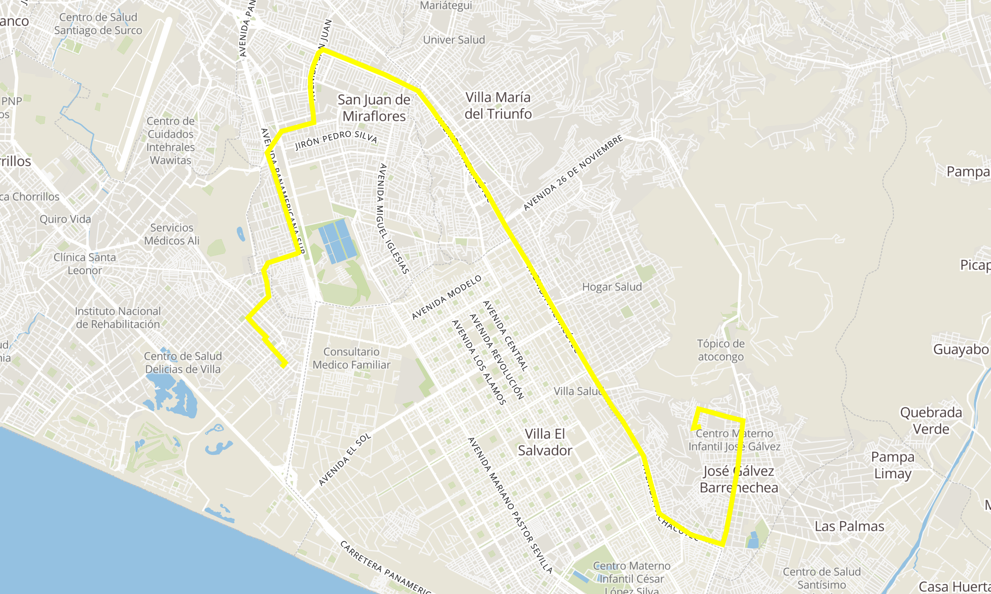 Recorrido de la línea 8722: V.M.T. - Chorrillos
