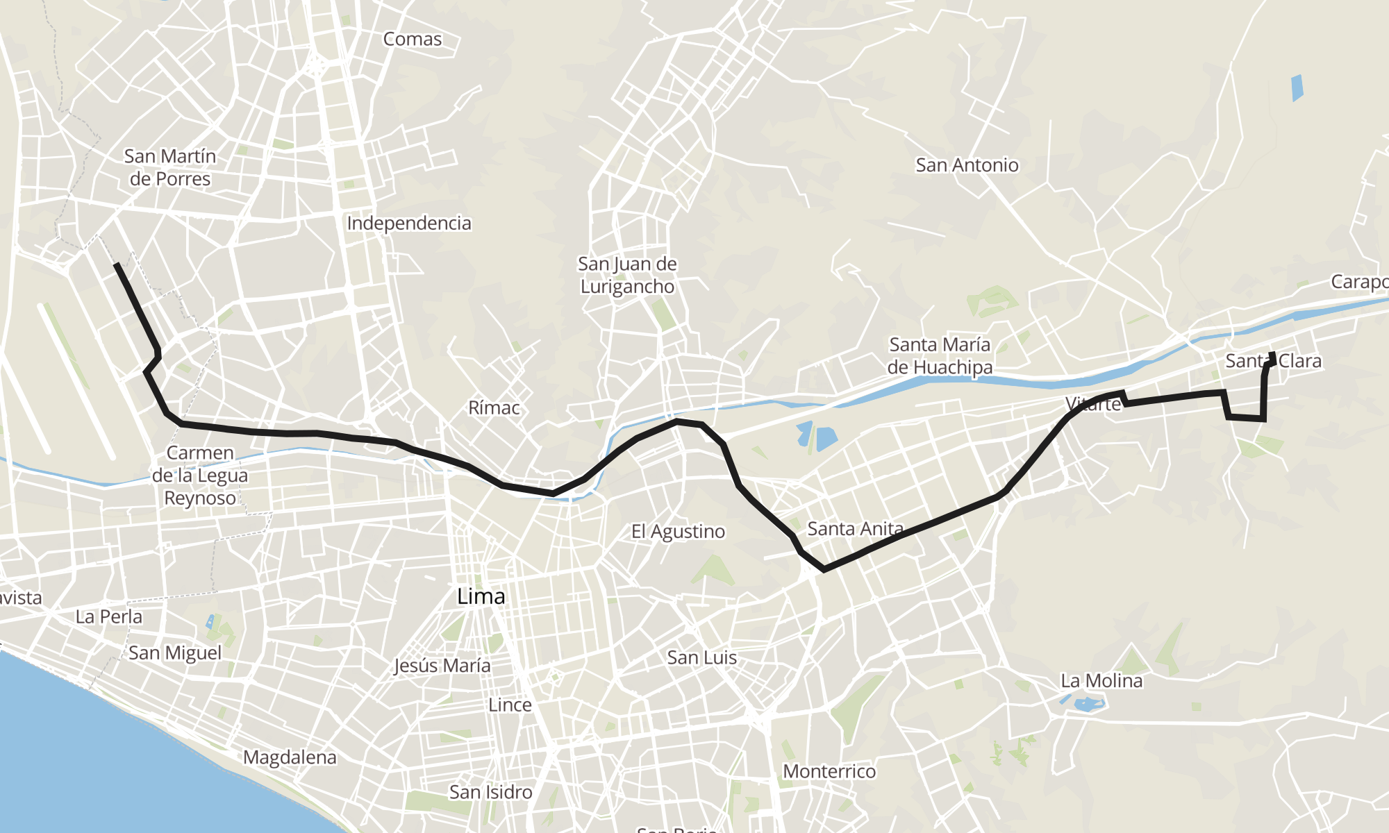 Recorrido de la línea CR25: Santa Clara (Ate) - Pacasmayo (Callao)