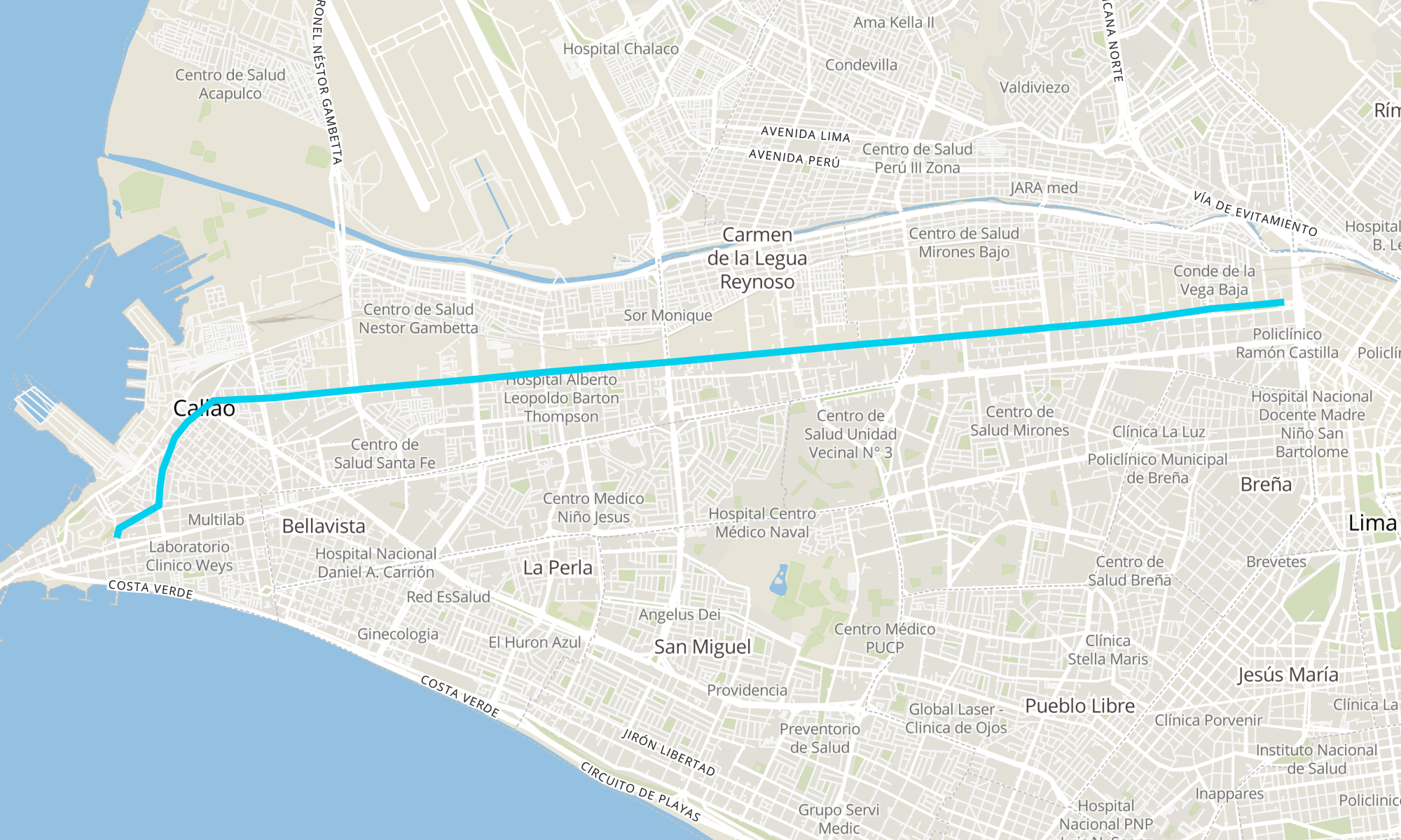 Recorrido de la línea CR40: Plaza Union (Lima) - Muni. Callao (Callao)