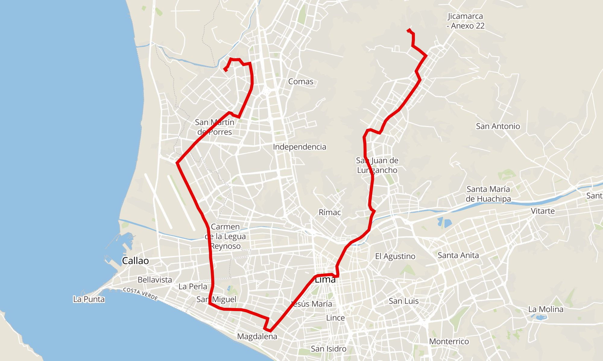 Recorrido de la línea 1286: San Martín de Porres (San Diego) - San Juan de Lurigancho (AA.HH. Mariátegui)