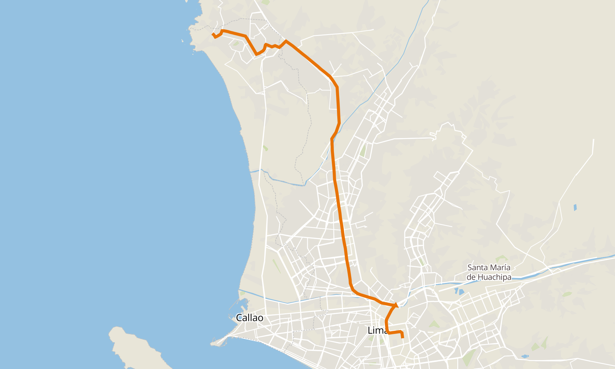 Recorrido de la línea IM34B: Pachacútec (Ventanilla) - Gamarra (La Victoria)