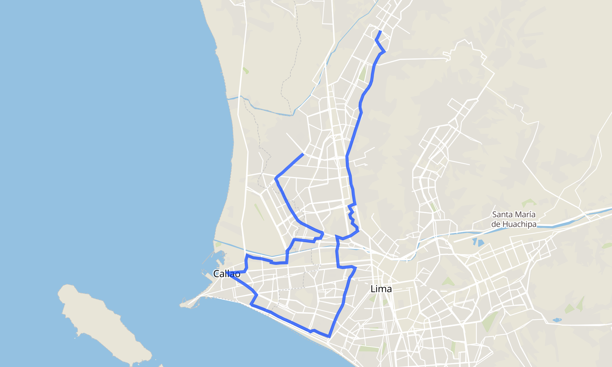 Sentido: Universitaria ‎→ Óvalo Canta Callao (203 paradas)