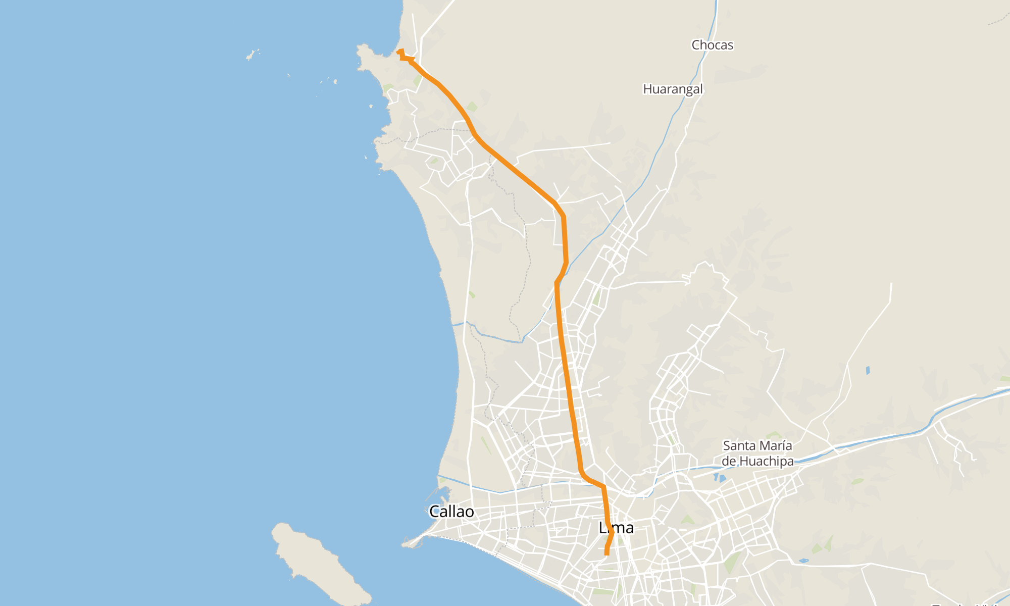 Recorrido de la línea 1168: Ancón (Óvalo Chacas) - Lince (Hospital Edgardo Rebagliati)