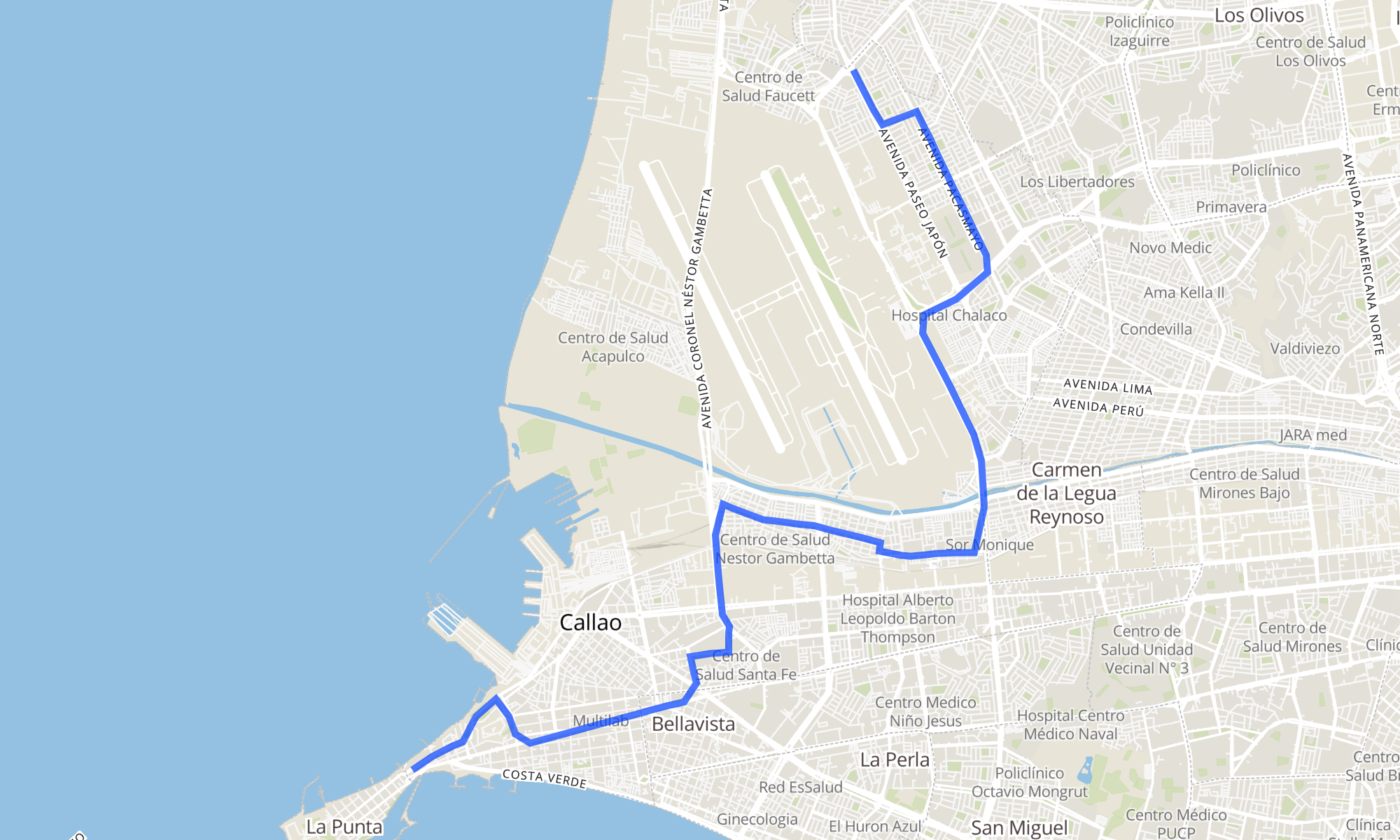 Recorrido de la línea UCL02: Chucuito - Callao