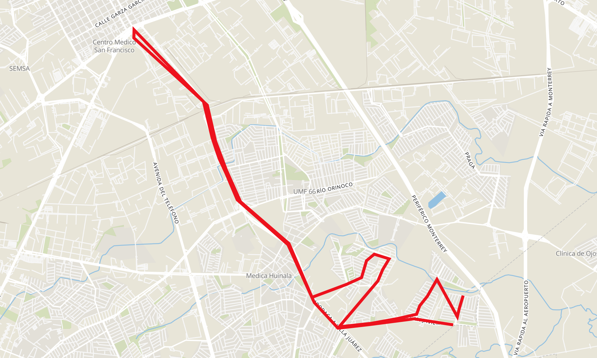 Recorrido de la línea A11: San Pablo - Apodaca