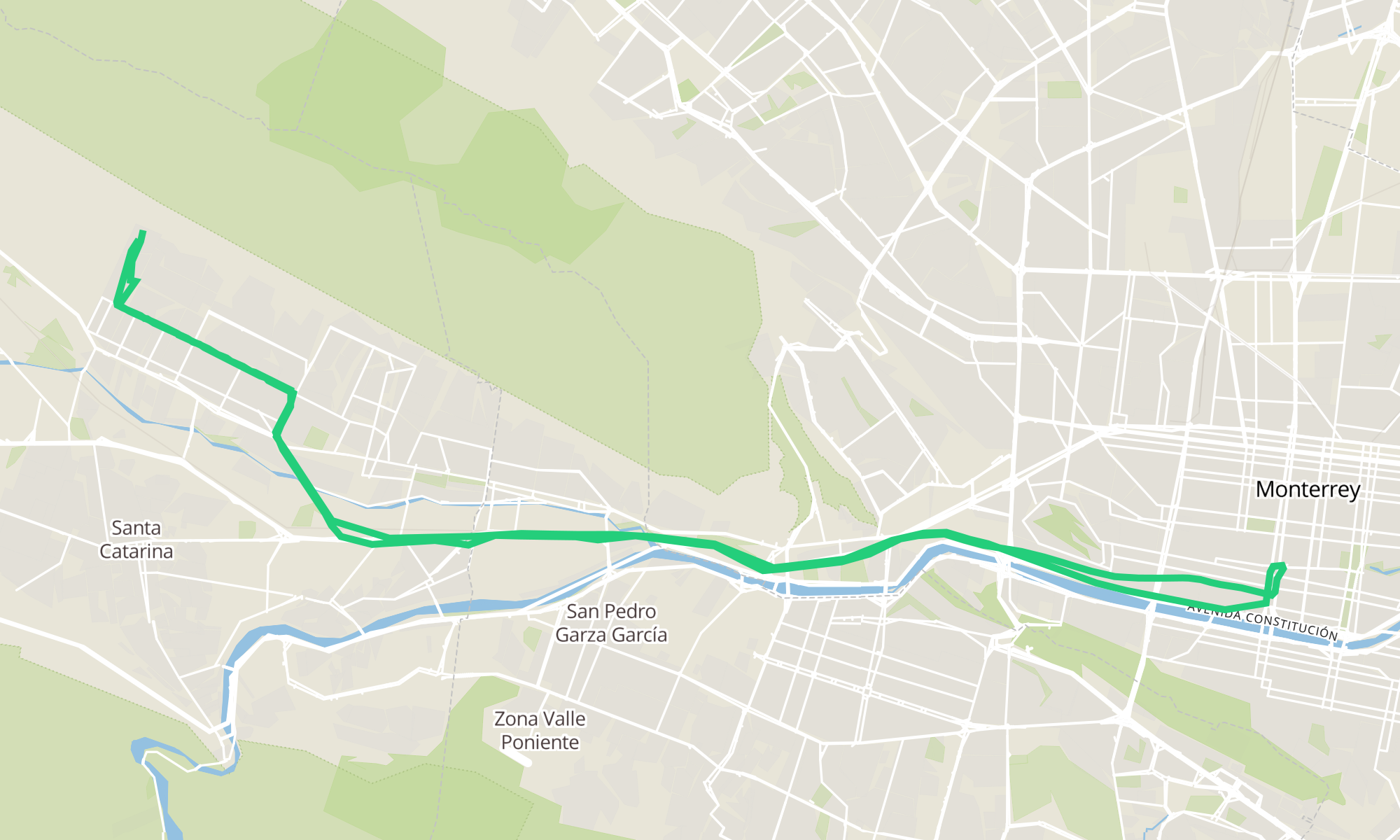 Sentido: Rincón de Las Palmas (Real de San Agustín - Real de San Martín) ‎→ Rincón de Las Palmas (Real Del Monte - Real Del Mezquital) (136 paradas)