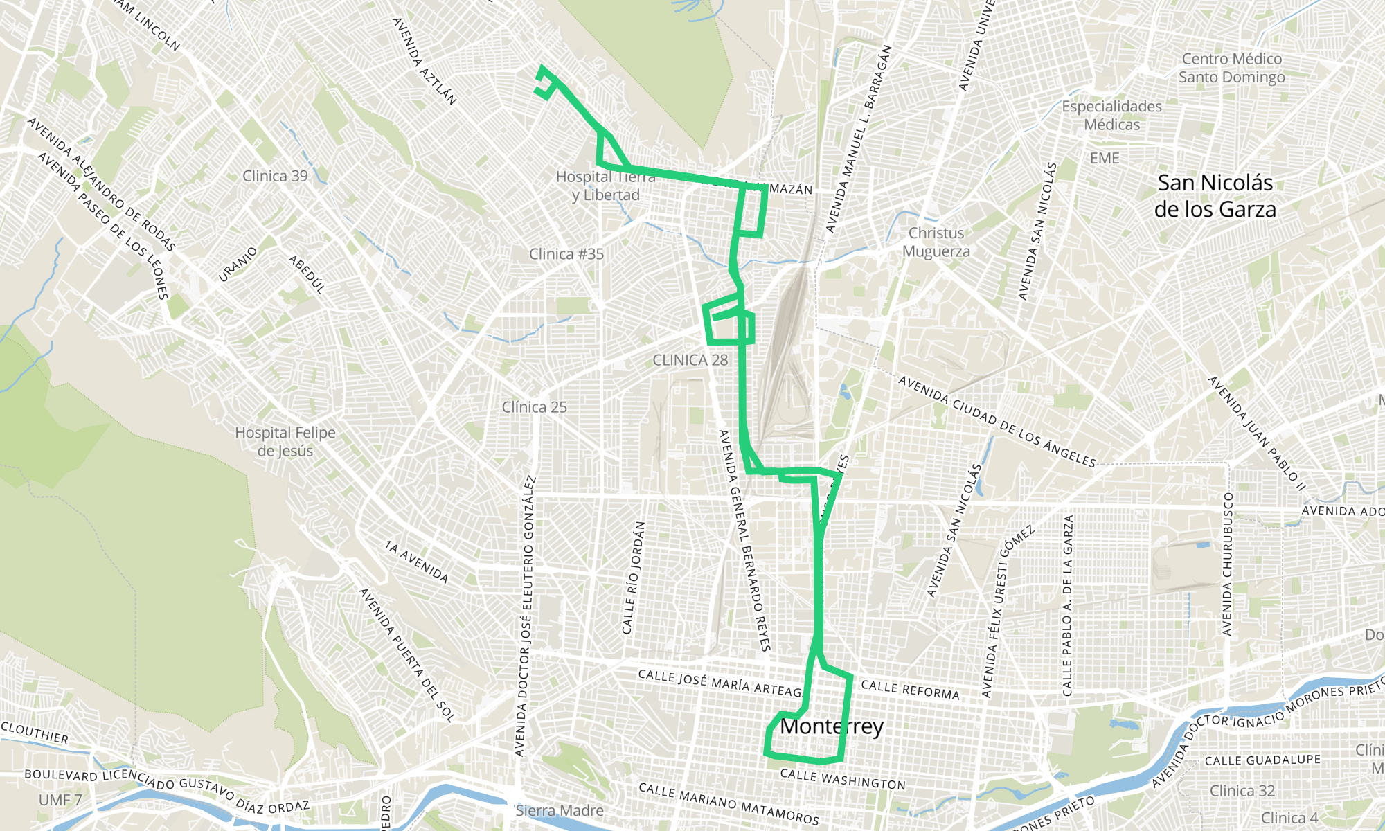 Sentido: Pedro Zorrilla (Antonio Díaz Soto Gama - Ángel Martínez) ‎→ Pedro Zorrilla (Carolina Morales - Emilio Romero) (139 paradas)