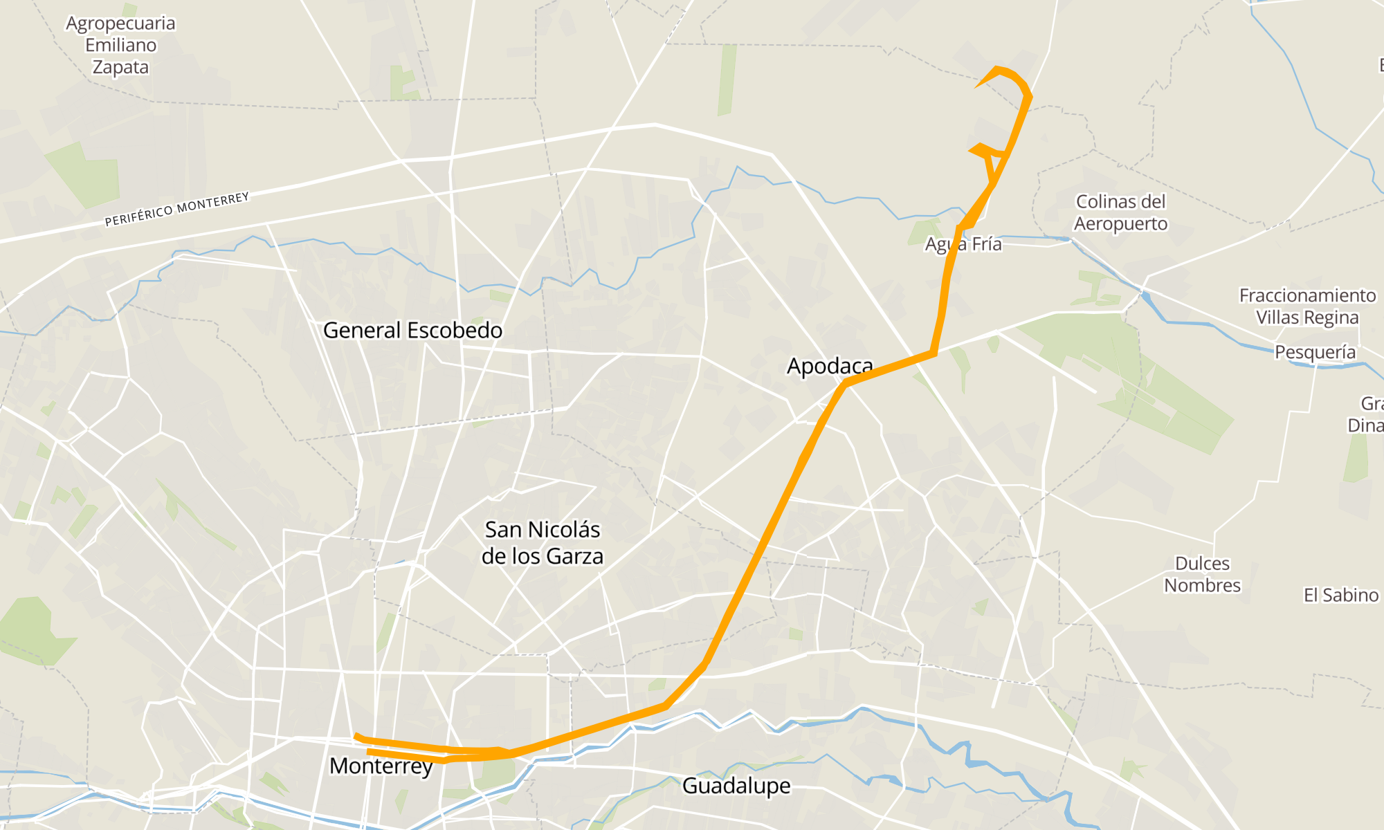 Sentido: José María Arteaga (Amado Nervo - Ignacio López Rayón) ‎→ Julián Villagrán (Central de Autobuses de Monterrey) (146 paradas)