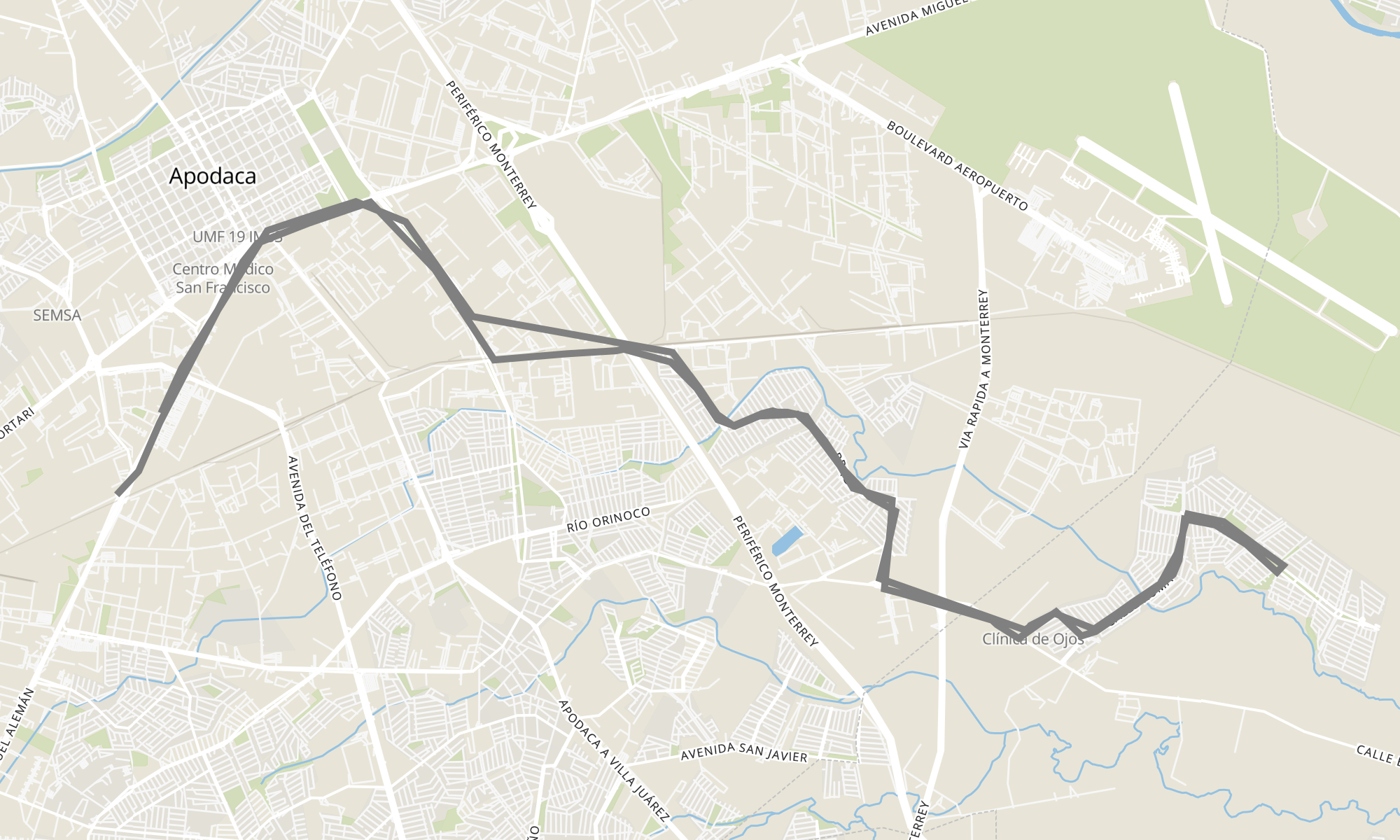 | Calle F Sn-O Almacenadora Banorte | Miguel Alemán (Parque Kalos Apodaca) |