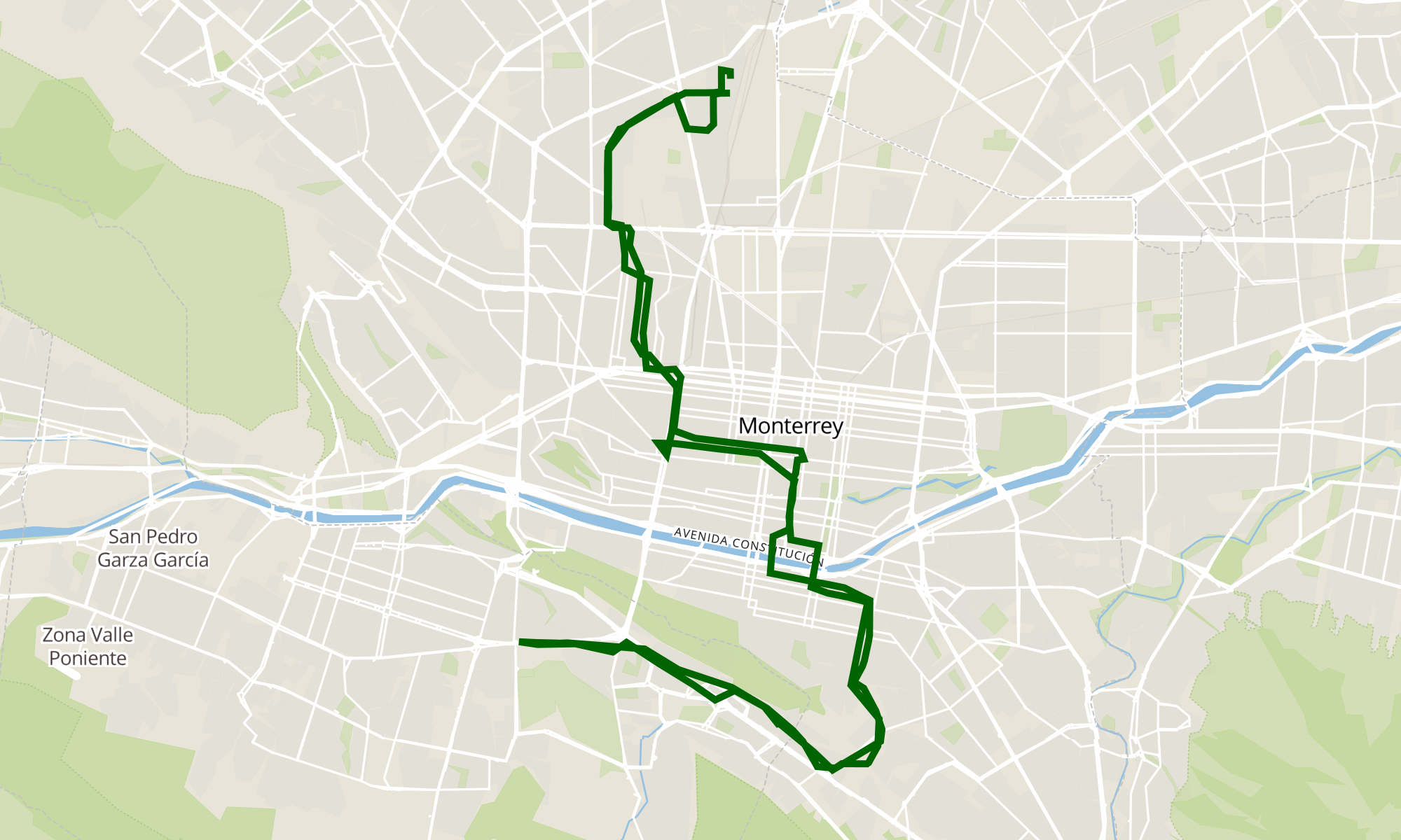Sentido: Aarón Sáenz (Secretaría Del Trabajo - Manuel Ávila Camacho) ‎→ Aaron Sáenz, 1018 (157 paradas)