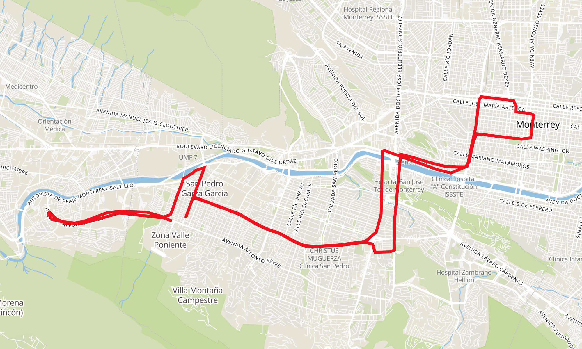 Sentido: Corregidora (Terminal de Grupo Lazcano) ‎→ Alfonso Reyes (Plaza Misión Del Valle) (142 paradas)