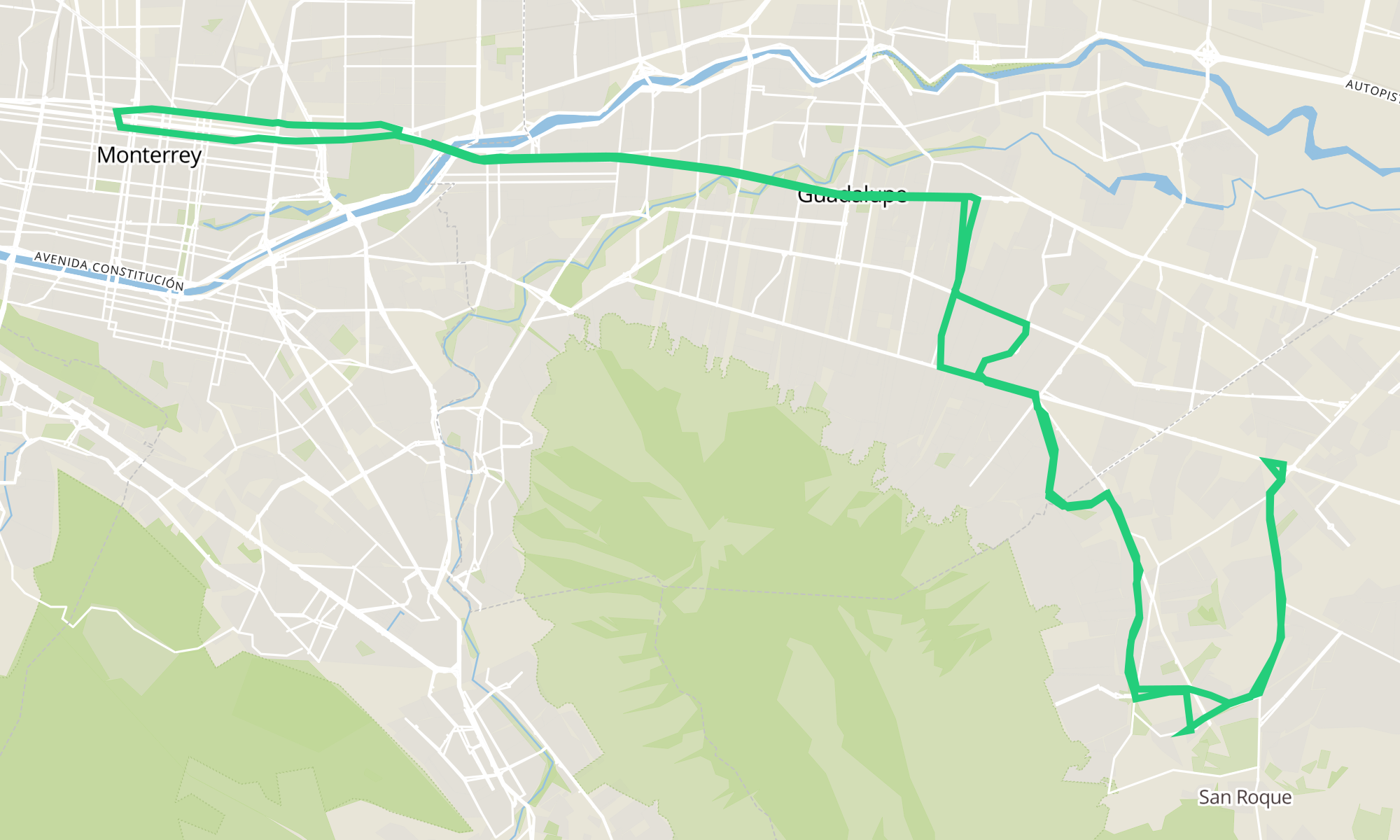 Recorrido de la línea 185: Sector 2: Valle Real - Francisco M. Zertuche - Centro