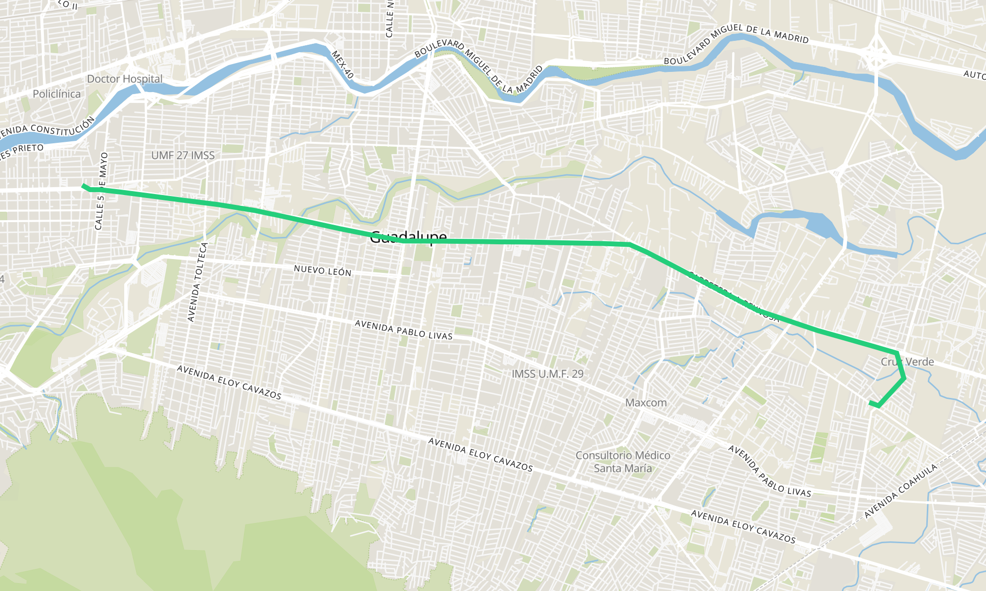 | 2.ª Avenida (Nicolás Bravo - Benito Juárez) | Vaquerías (Terminal de Grupo Lazcano) |