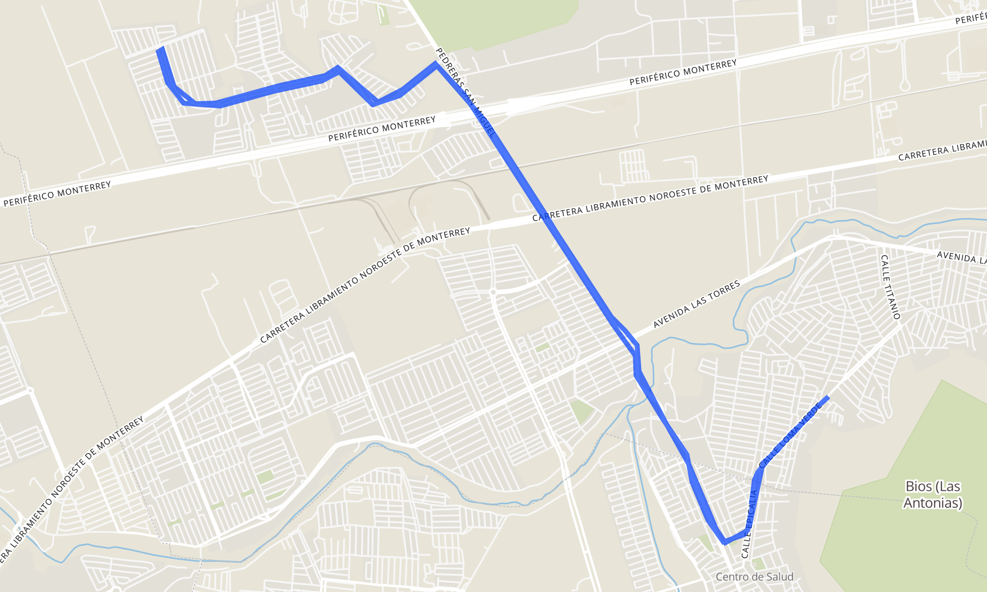 Recorrido de la línea 220: Praderas de San Francisco - Colinas del Topo Chico
