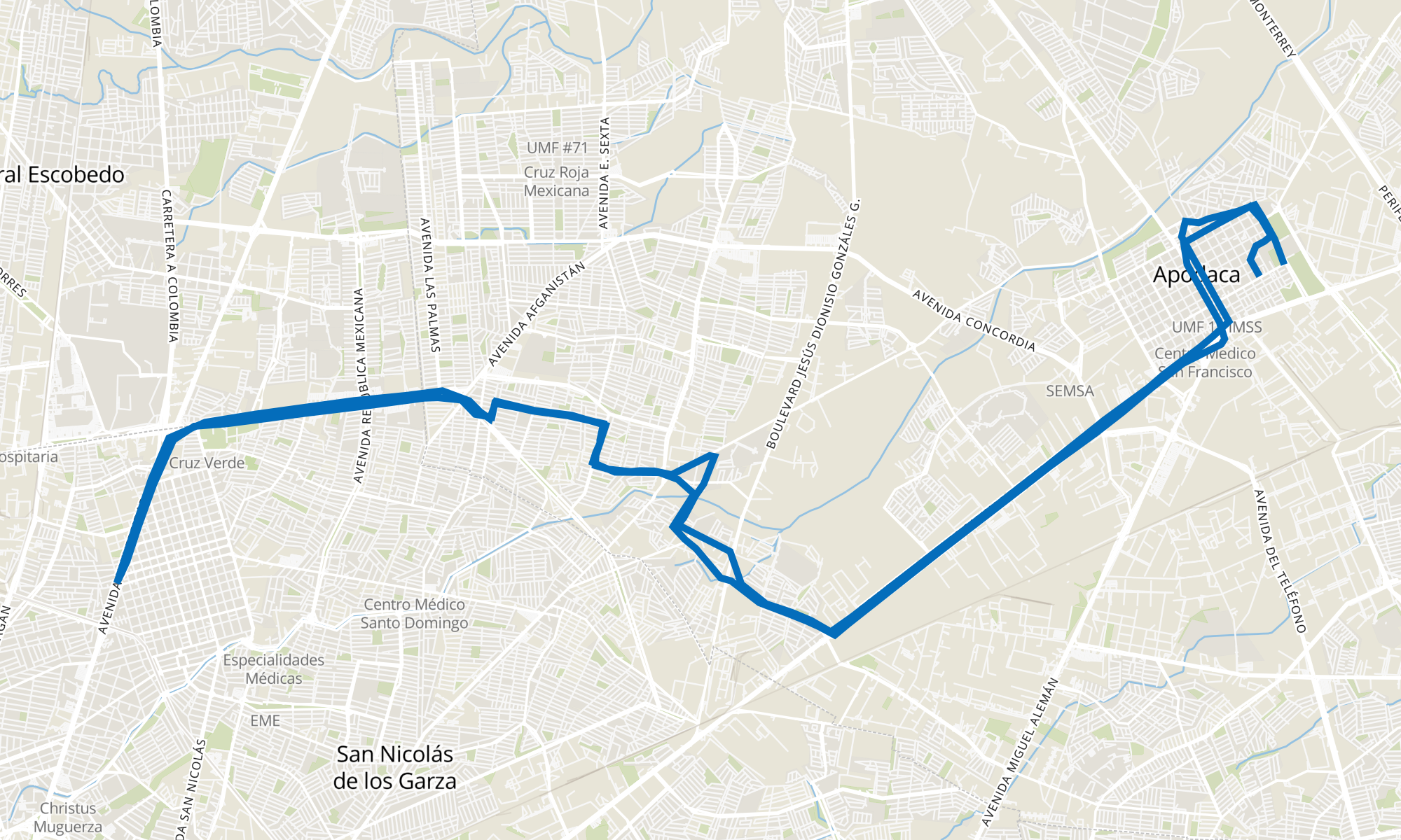 | Garza García (Las Galaxias - Libramiento Norte) | Chapultepec (Terminal de Grupo Nova) |