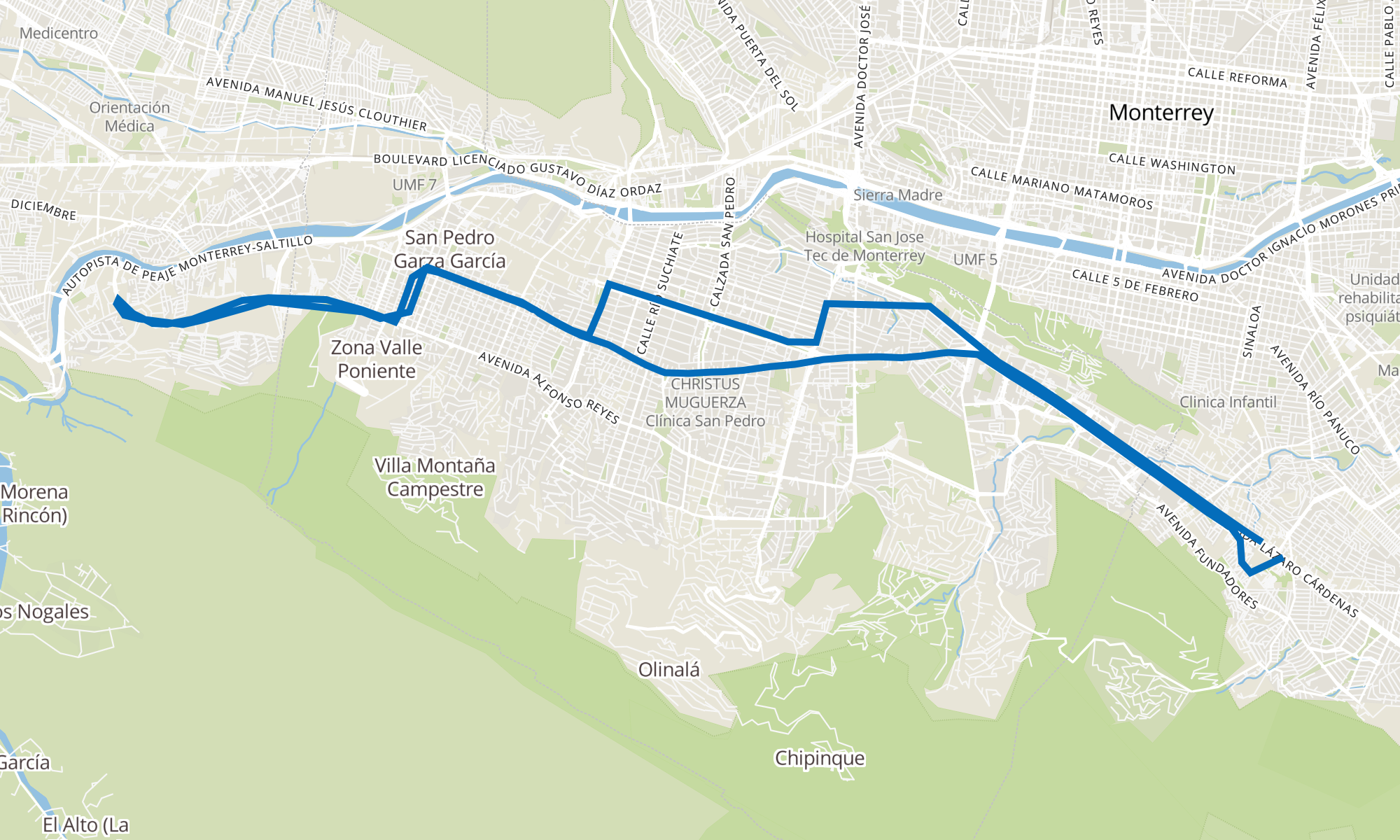 Recorrido de la línea 300: Valle Oriente - Valle Poniente